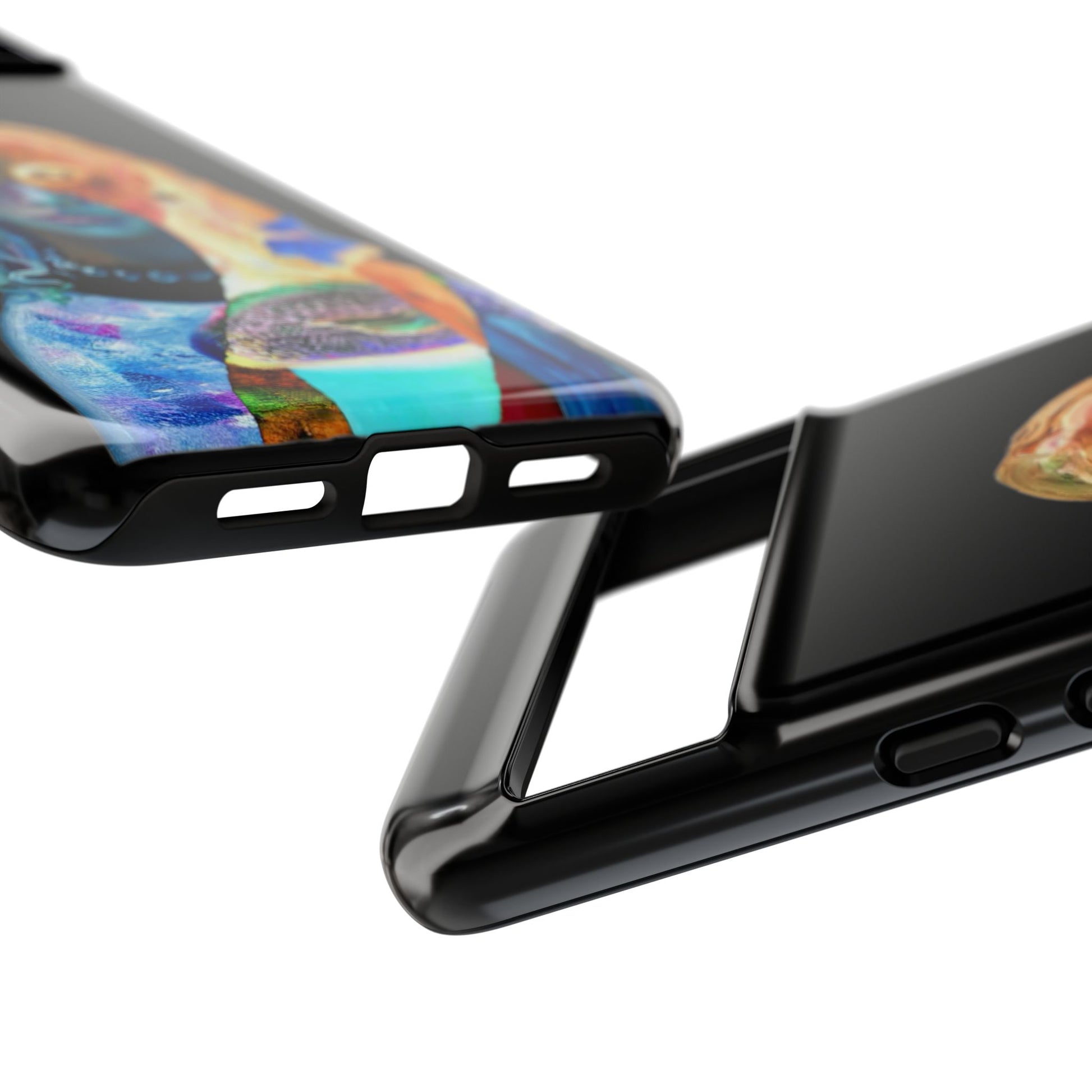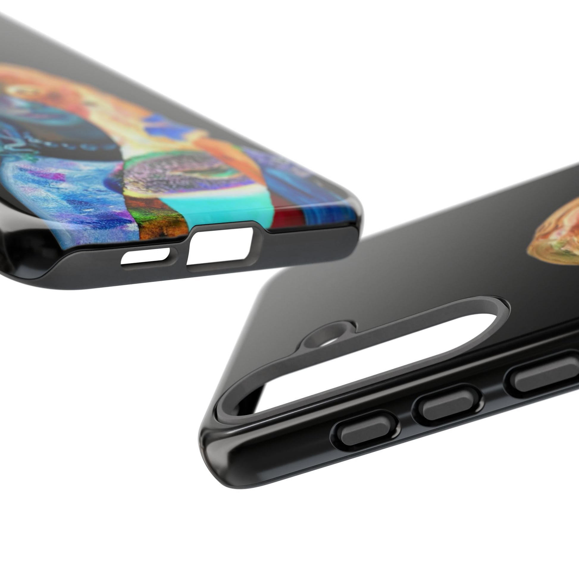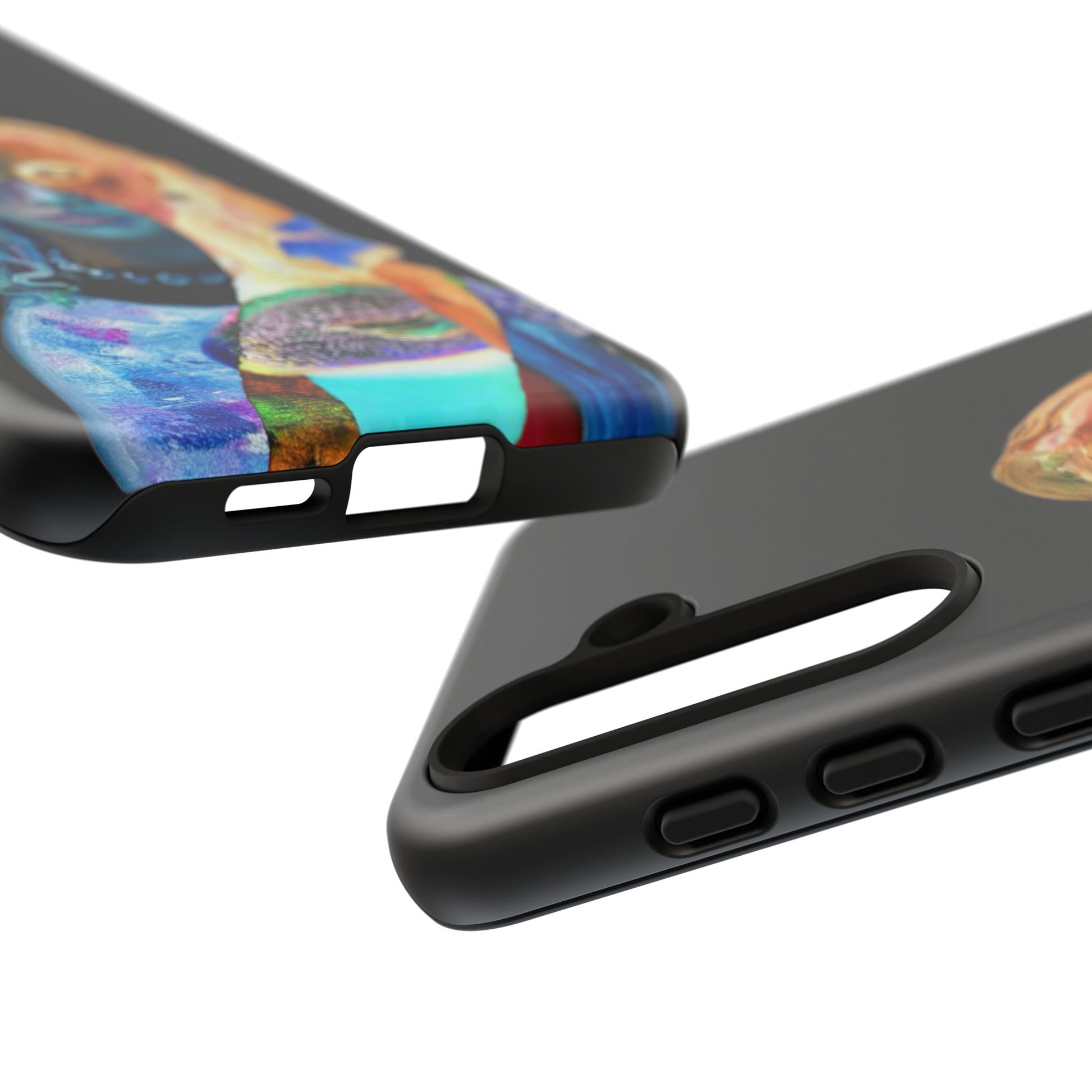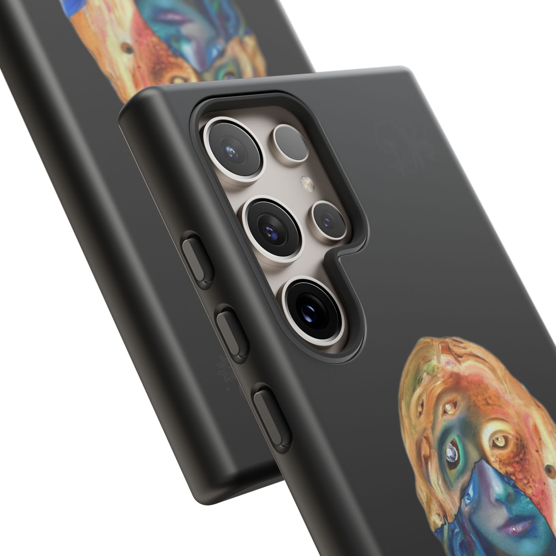 A bold, art-forward protective phone case that turns your device into a moving gallery piece. The dual-layer shell pairs a glossy printed outer polycarbonate with a soft TPU silicone liner, so the surreal portrait print stays vivid while the case soaks up shocks and resists everyday wear. Deep blacks and saturated hues make the collage-style figure pop. Thoughtful cutouts keep ports open and wireless charging accessible, while UV protection helps preserve the image when used outdoors. This case feels like an extension of a creative life — protective, tactile, and visually striking.