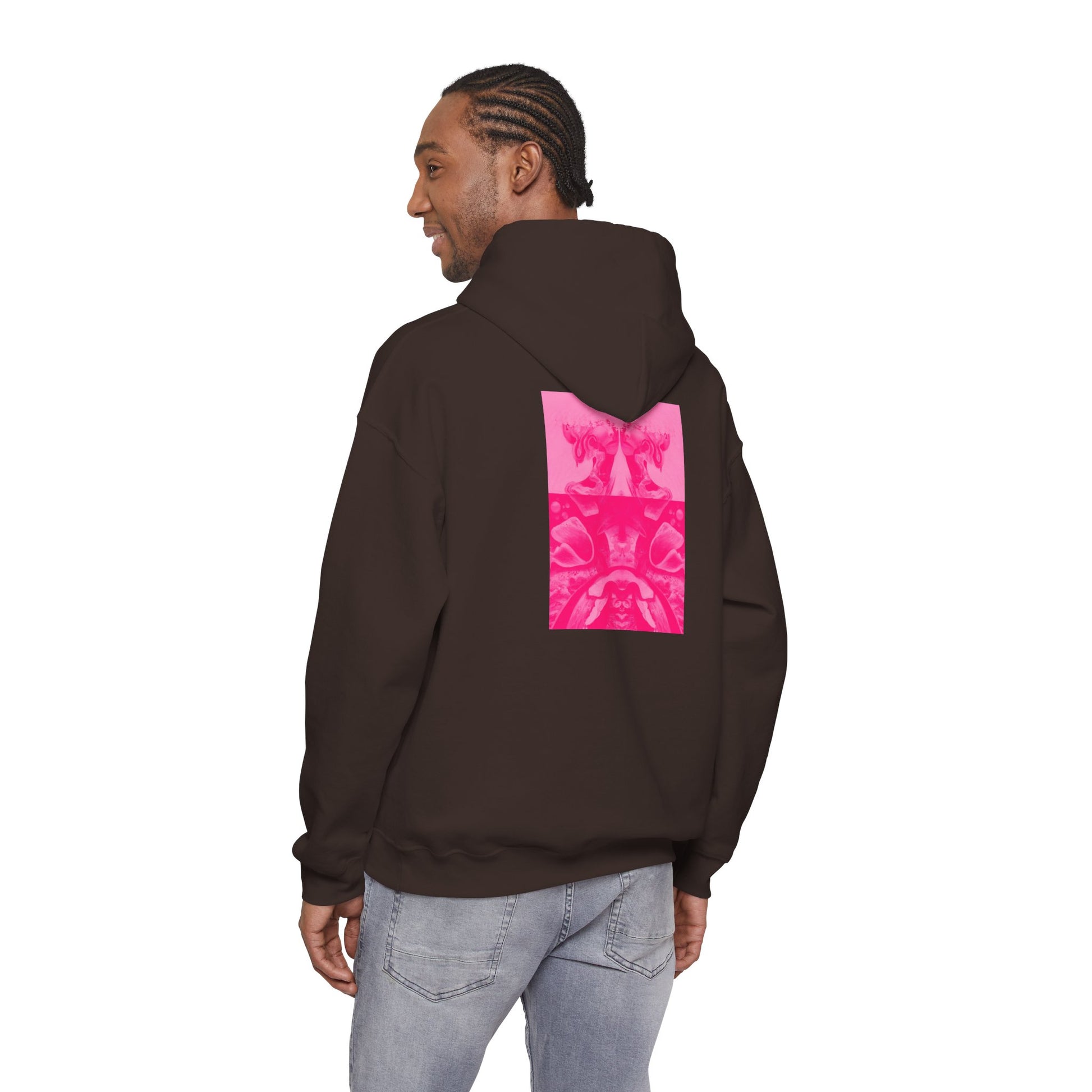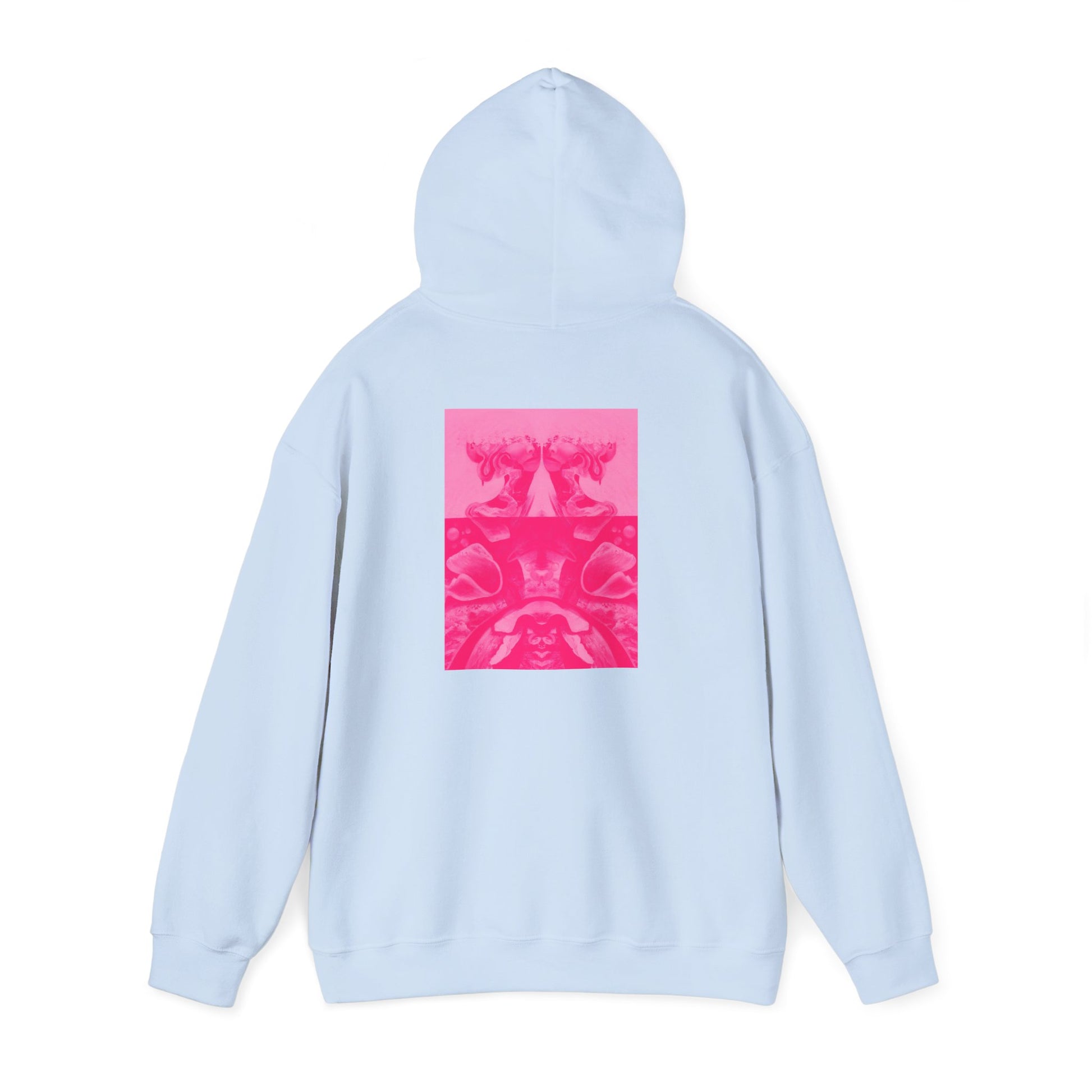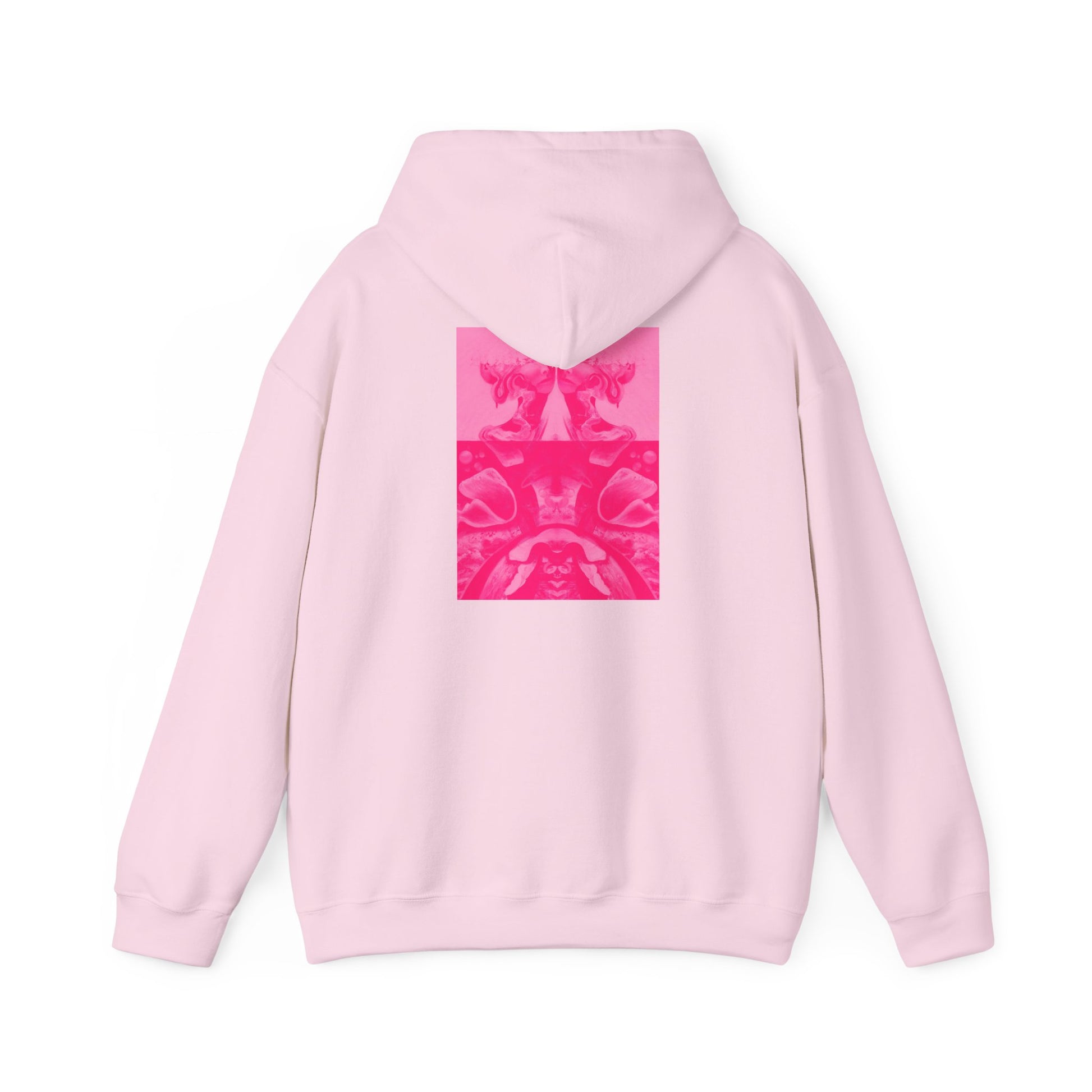 This hoodie is a wearable artwork — a soft, heavyweight shell that feels like a private gallery you can walk around in. The design channels Amarildo Ruçi’s world of hybrid beings and portals: surreal shapes and symbolic motifs that shift with movement. It settles over your shoulders like a quiet declaration: you think in images, you carry memory as texture. The roomy kangaroo pocket keeps hands warm between conversations. A double-lined, color-matched hood and adjustable drawcord let you tune how much of the world you show. The tubular knit gives smooth lines and fewer seams, so the printed imagery reads clean and uninterrupted across the surface. Built to be felt as much as seen, this hoodie turns everyday warmth into a statement about identity and imagination.