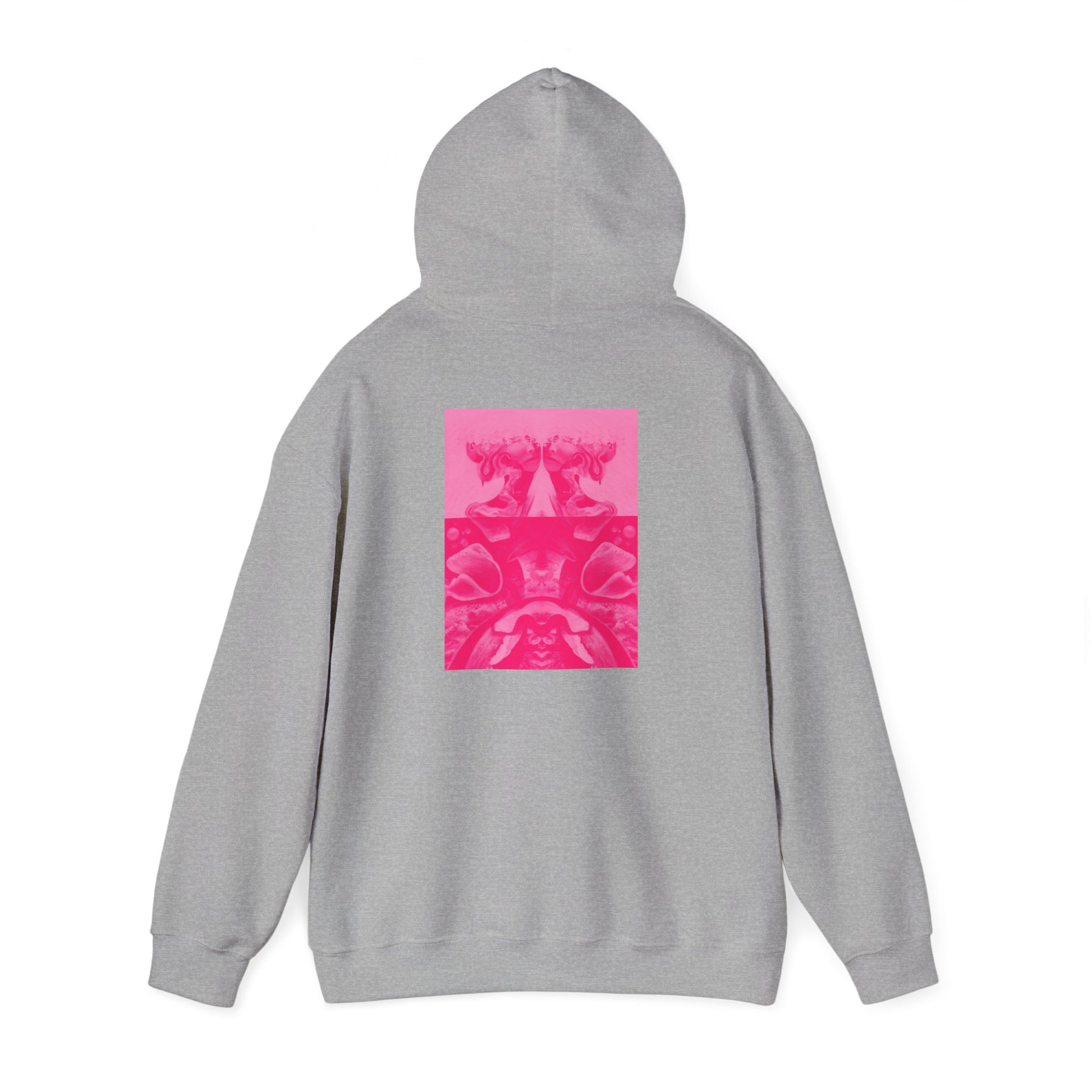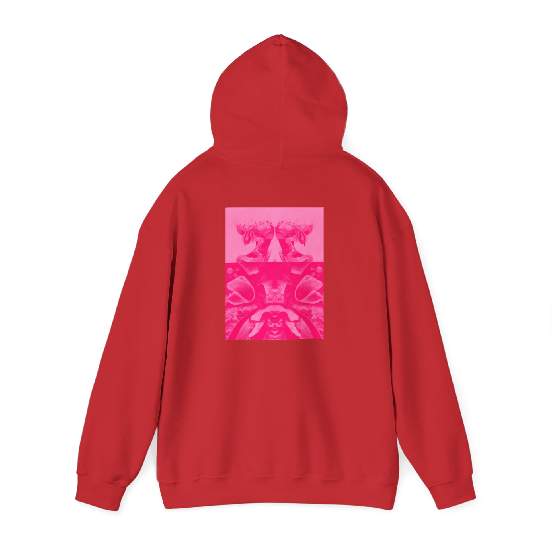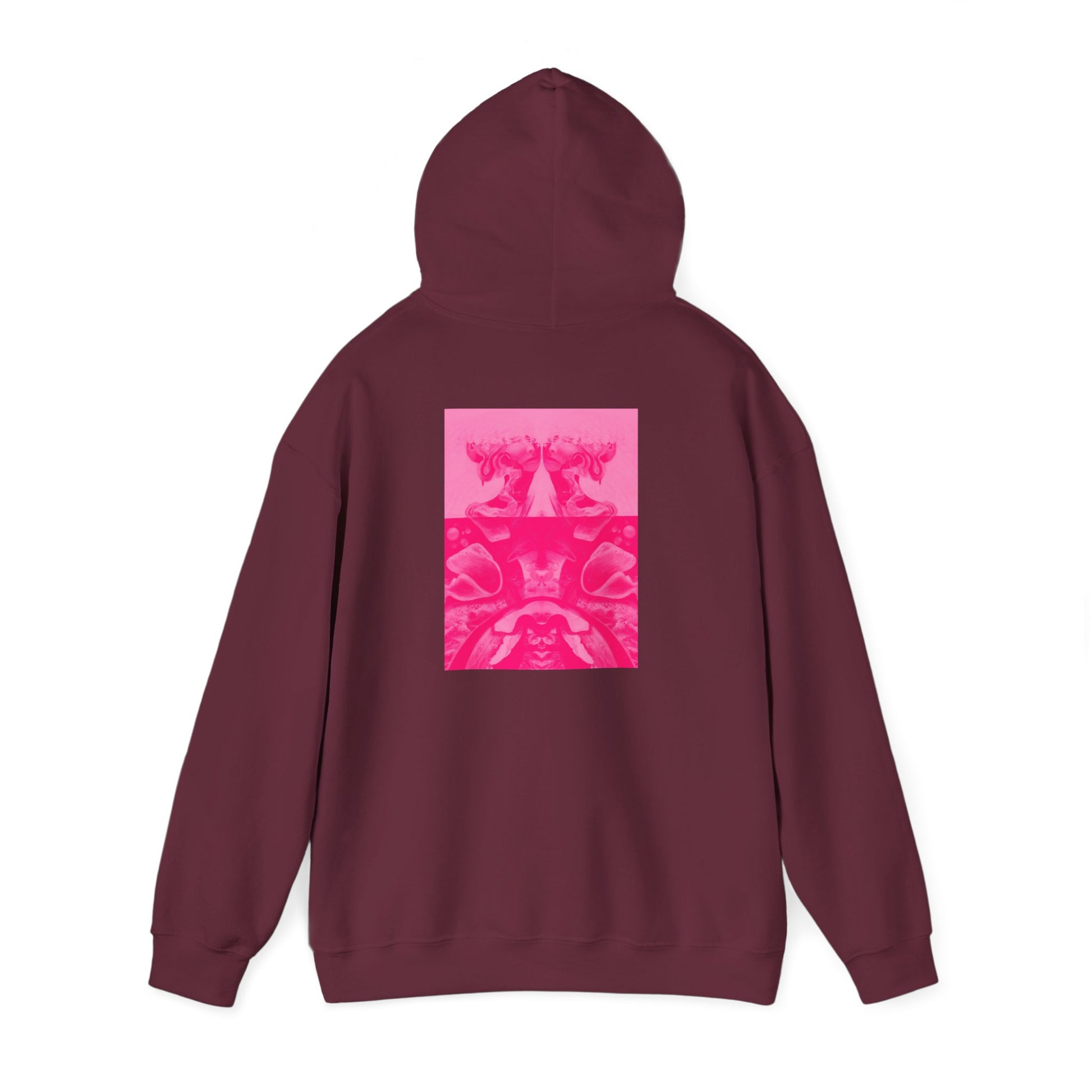 This hoodie is a wearable artwork — a soft, heavyweight shell that feels like a private gallery you can walk around in. The design channels Amarildo Ruçi’s world of hybrid beings and portals: surreal shapes and symbolic motifs that shift with movement. It settles over your shoulders like a quiet declaration: you think in images, you carry memory as texture. The roomy kangaroo pocket keeps hands warm between conversations. A double-lined, color-matched hood and adjustable drawcord let you tune how much of the world you show. The tubular knit gives smooth lines and fewer seams, so the printed imagery reads clean and uninterrupted across the surface. Built to be felt as much as seen, this hoodie turns everyday warmth into a statement about identity and imagination.