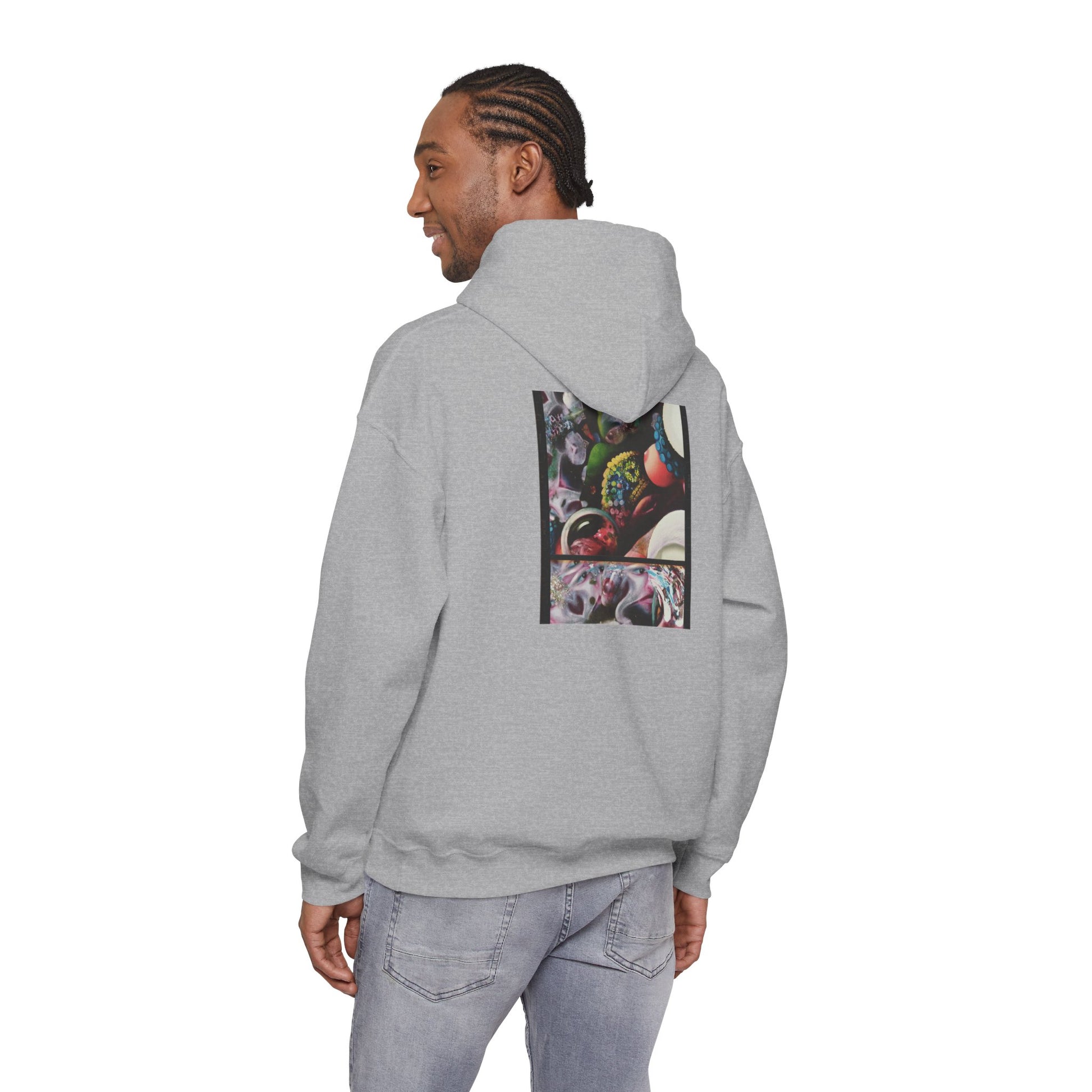 AMRU Graphic Hoodie — Abstract Cosmic Paint Pour Art Back Print