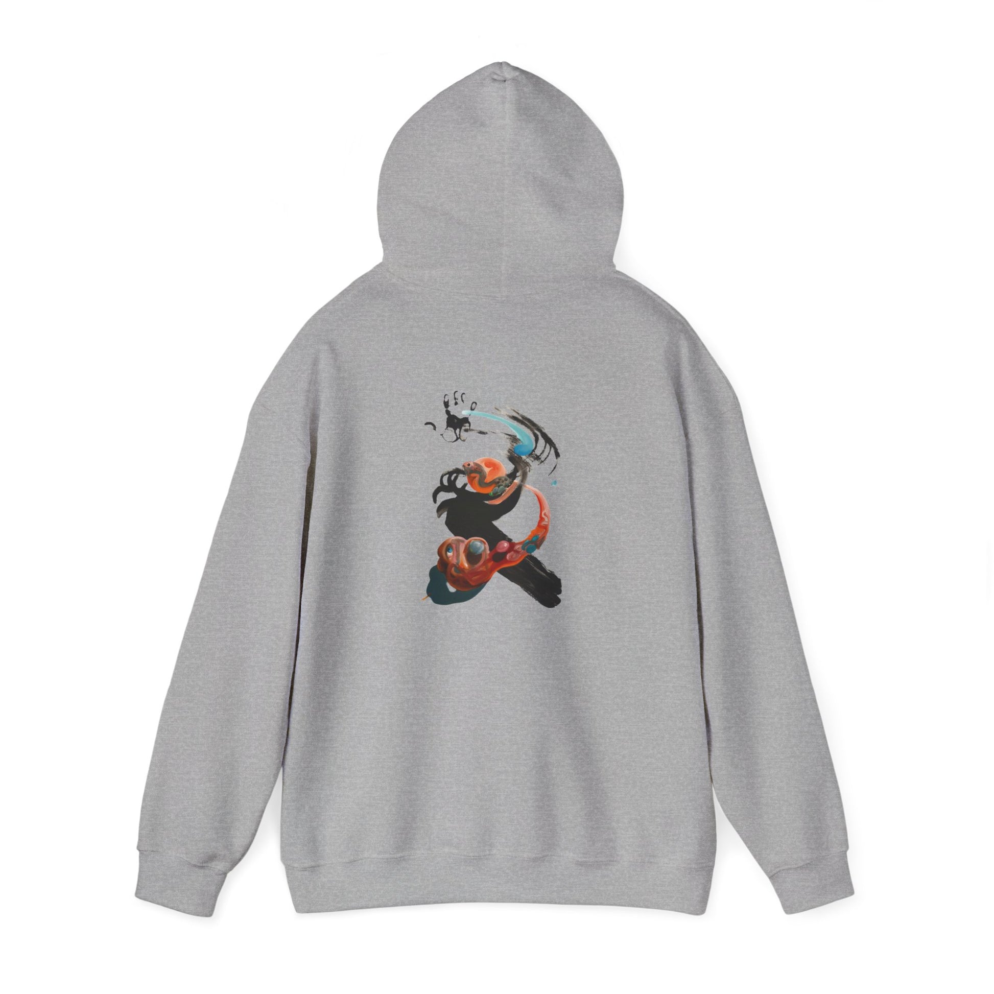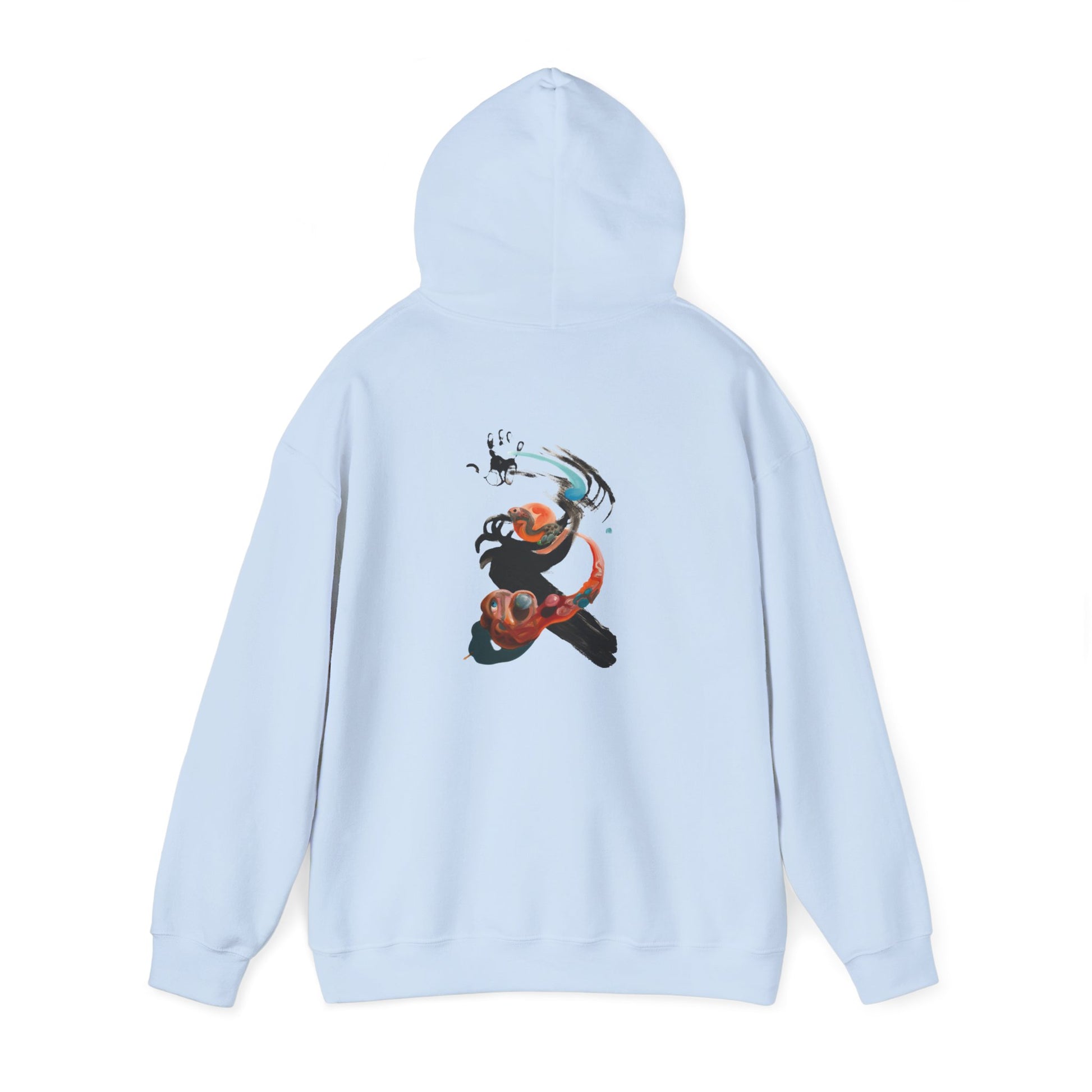 AMRU Minimal Logo Hoodie — Artistic Watercolor Brushstroke Back Print
