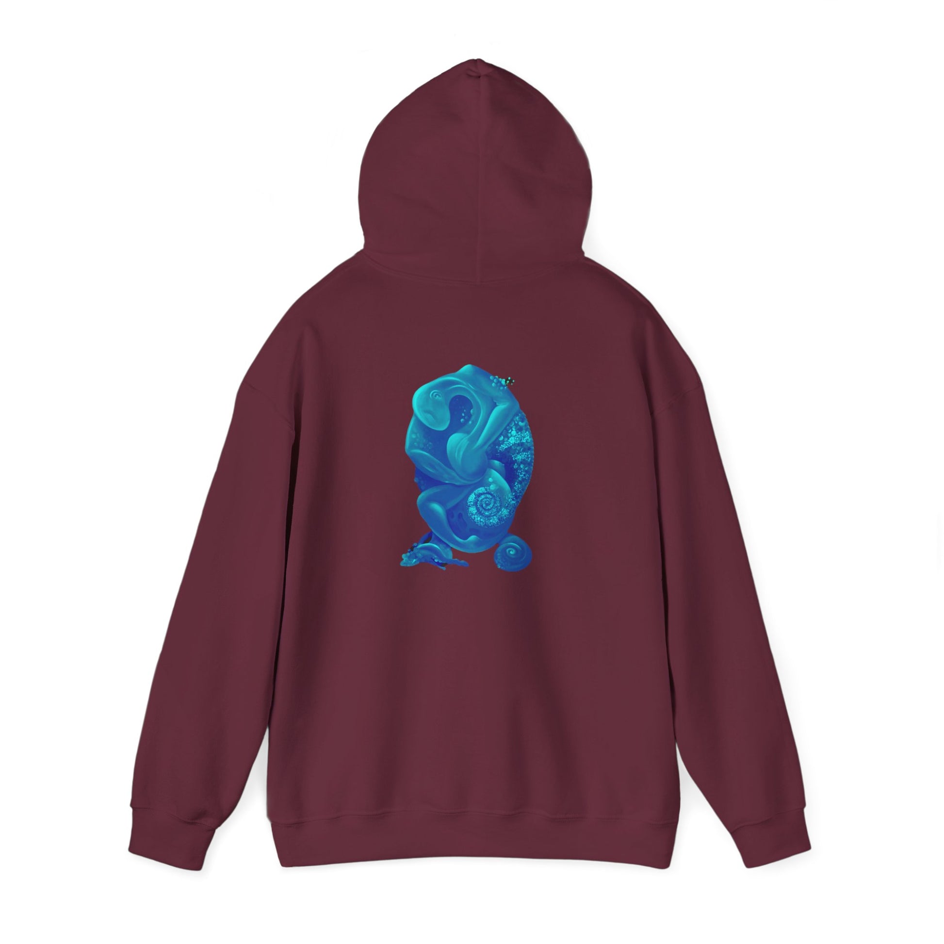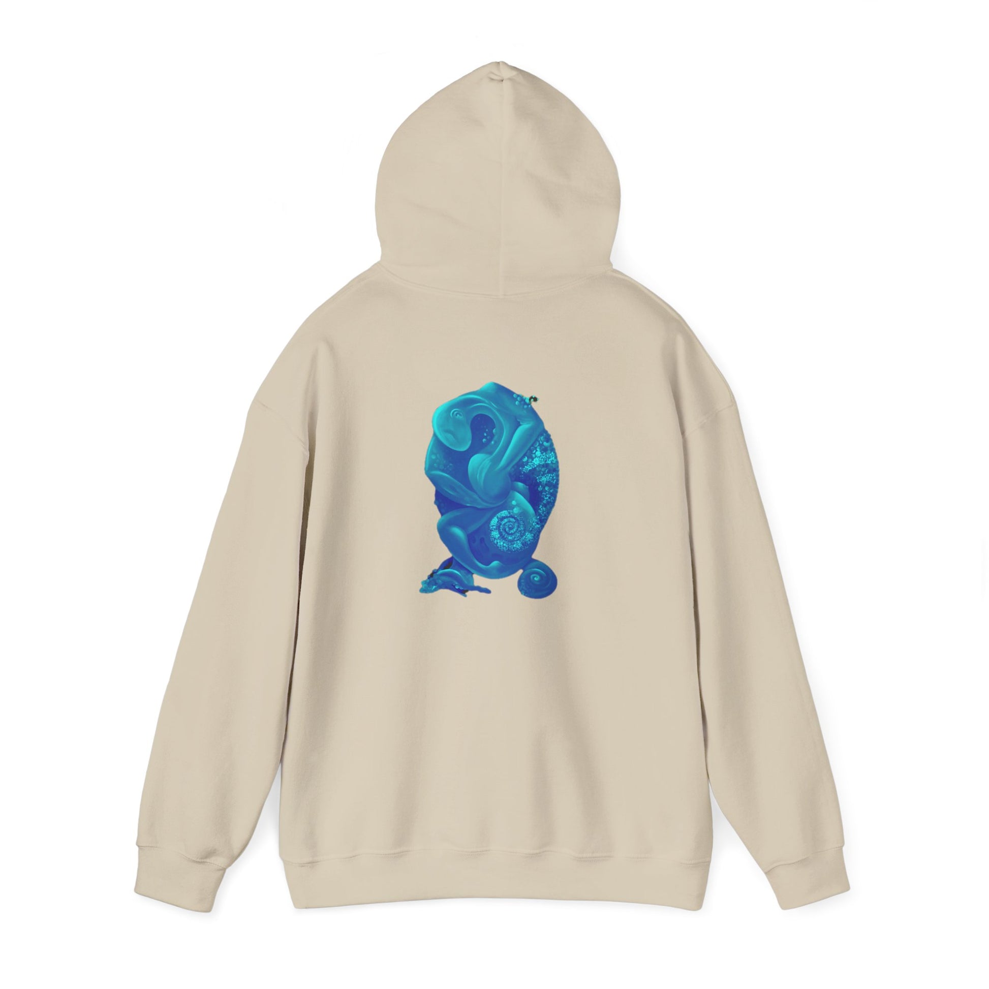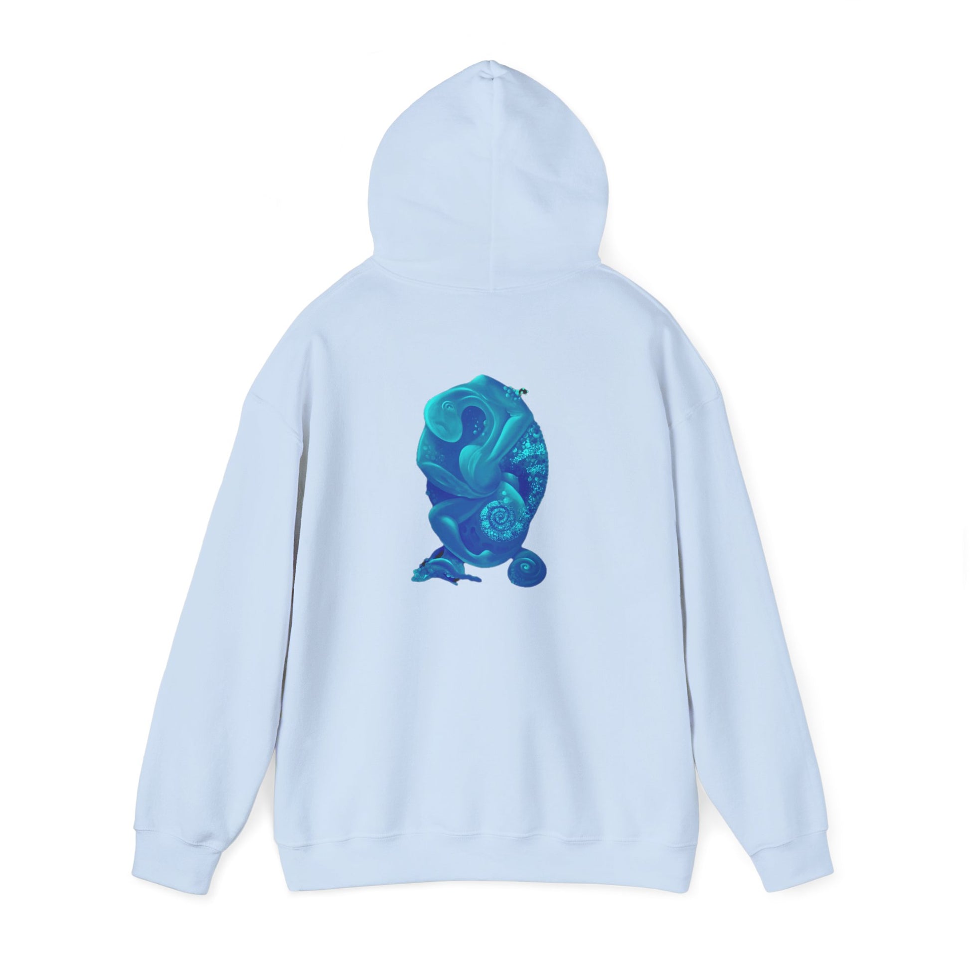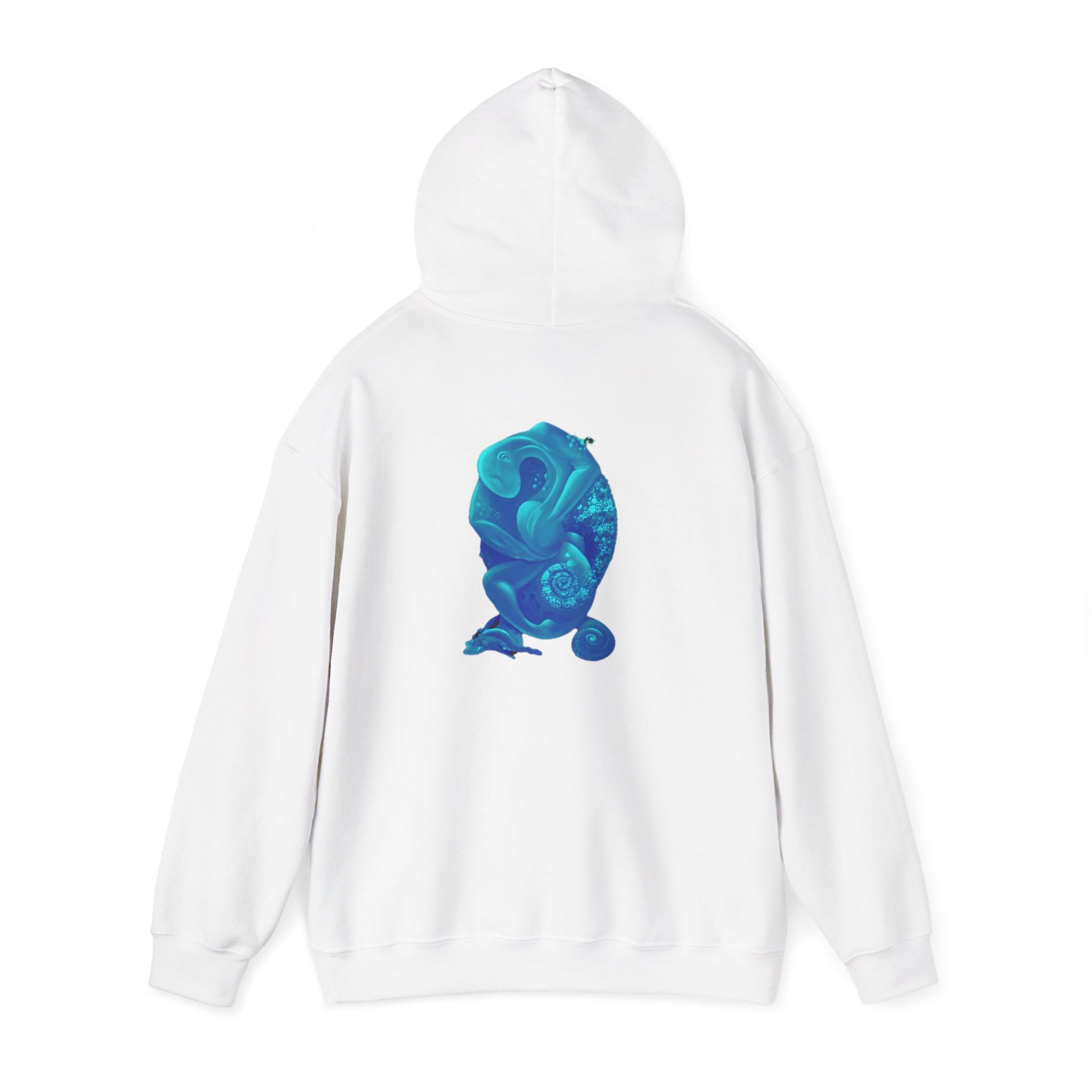 AMRU Minimal Logo Hoodie with Blue Abstract Art Back – Modern Streetwear Pullover