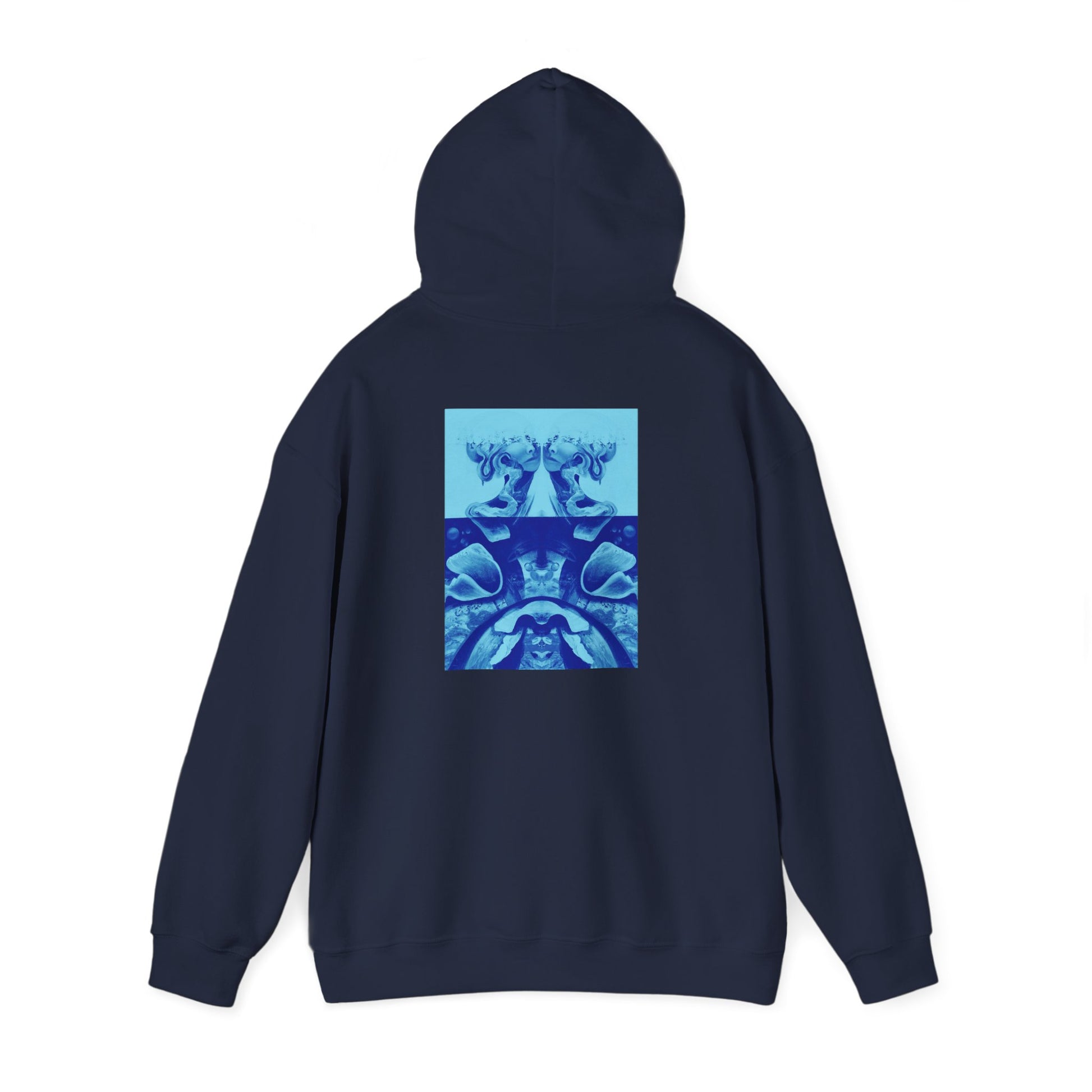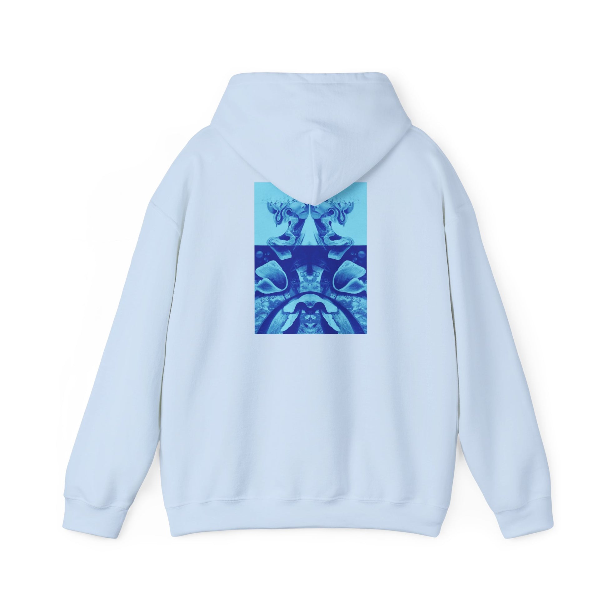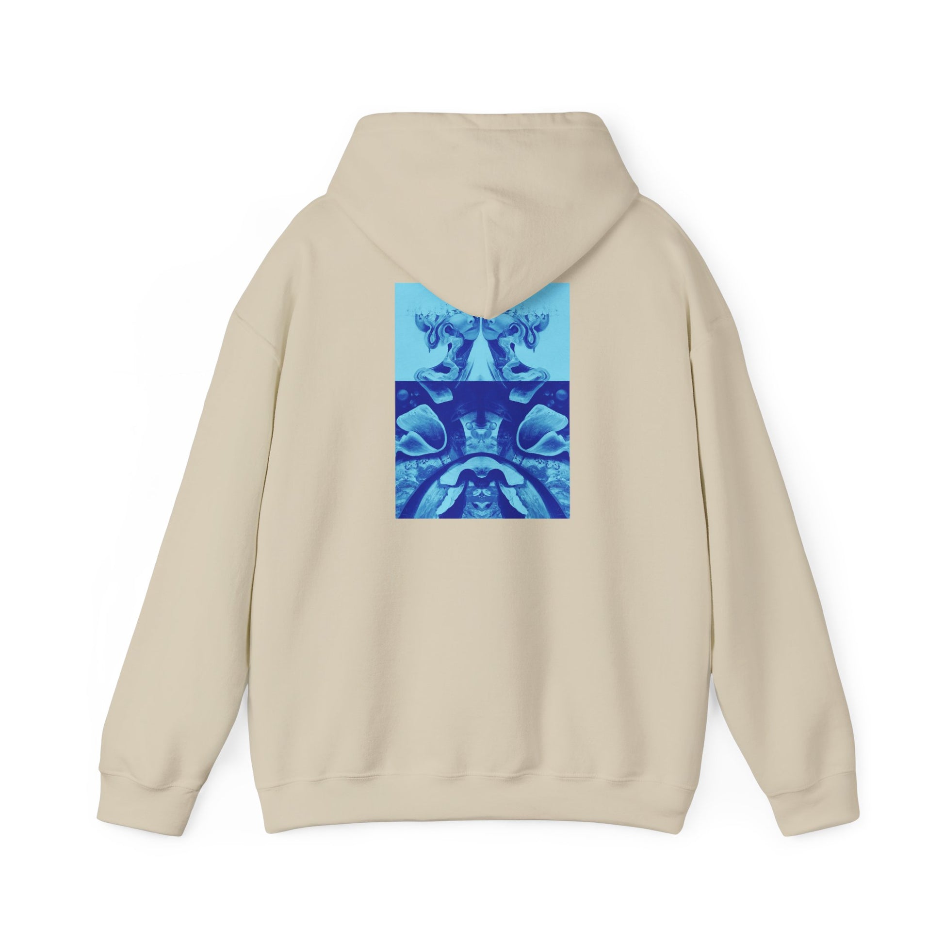 AMRU Minimal Logo Hoodie with Blue Abstract Back Print