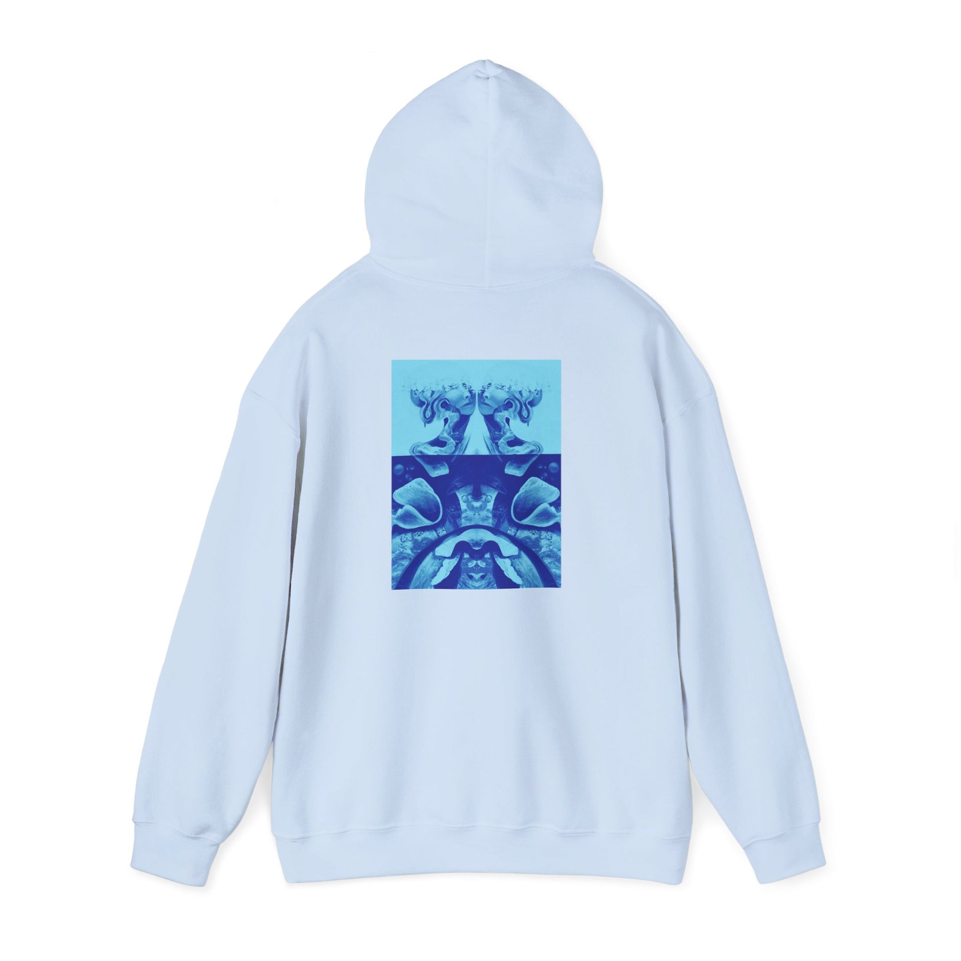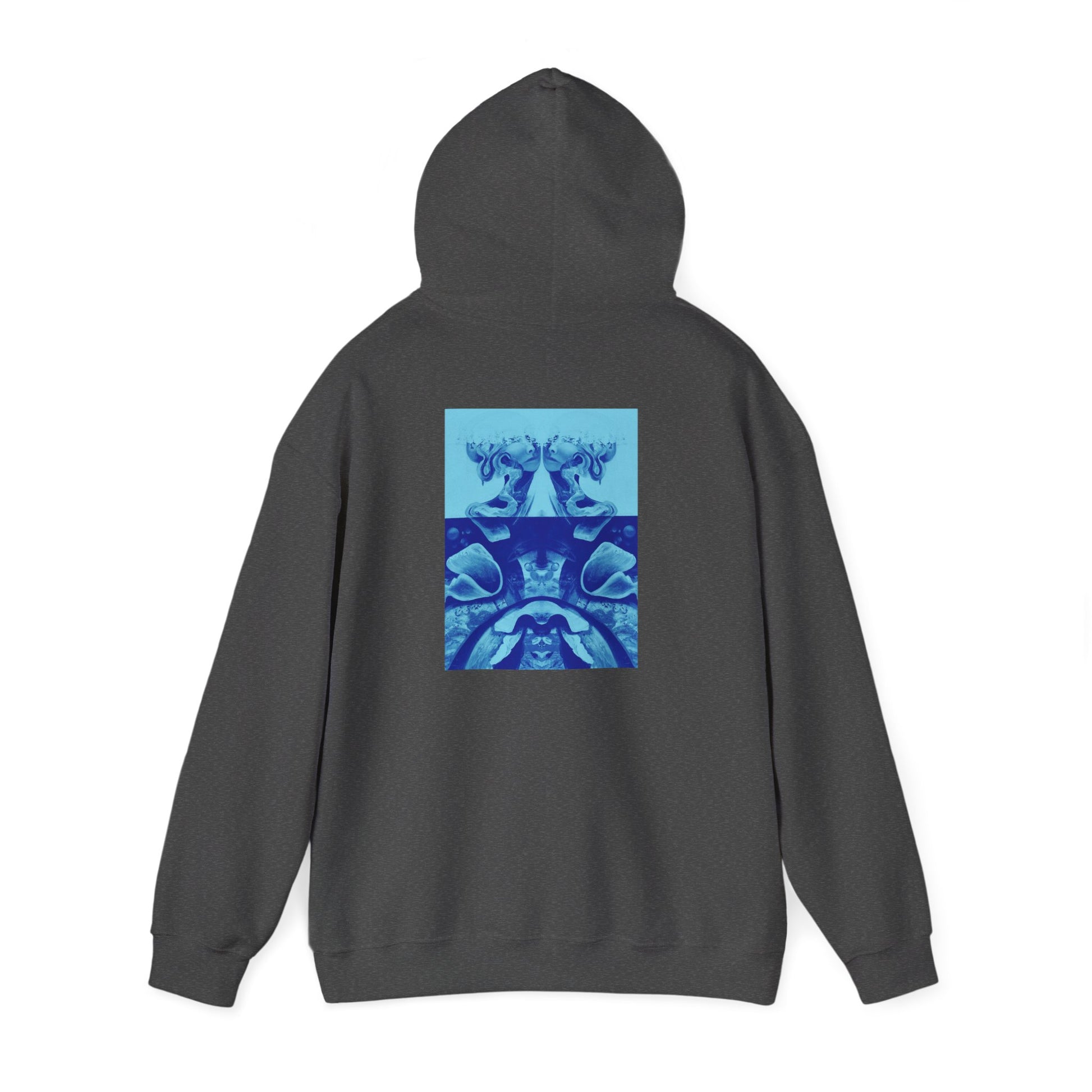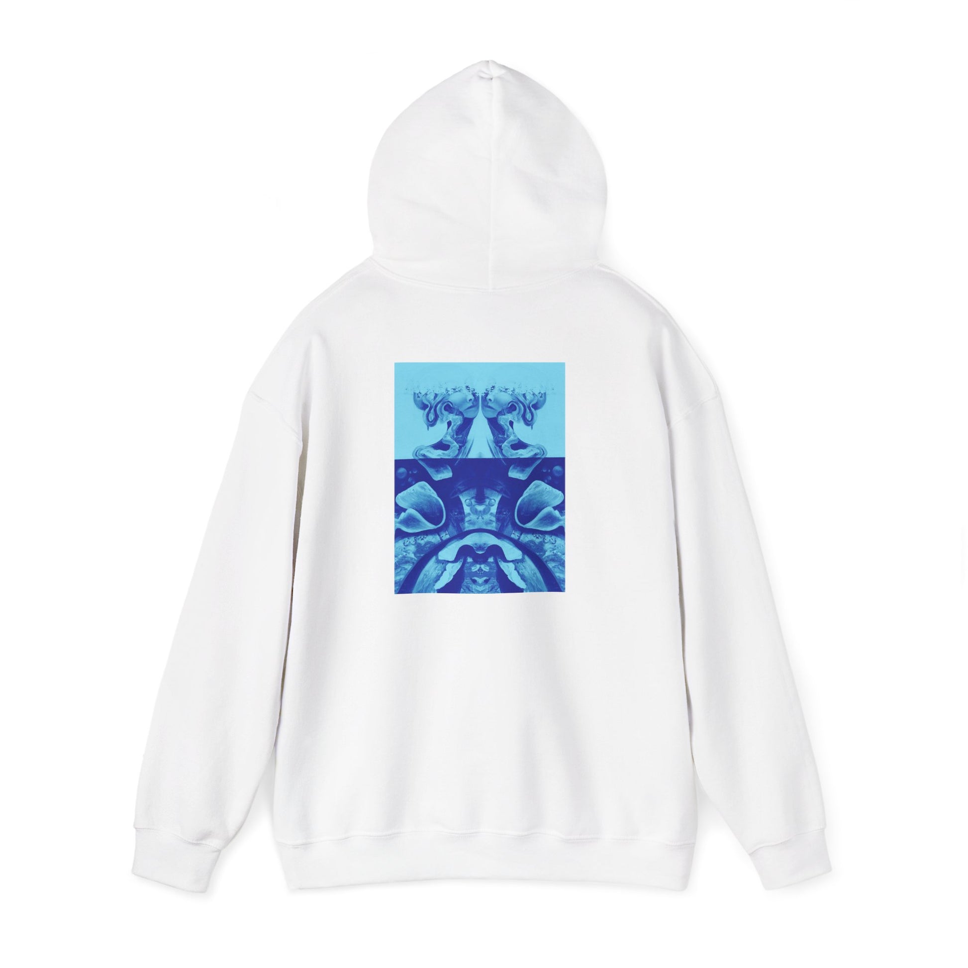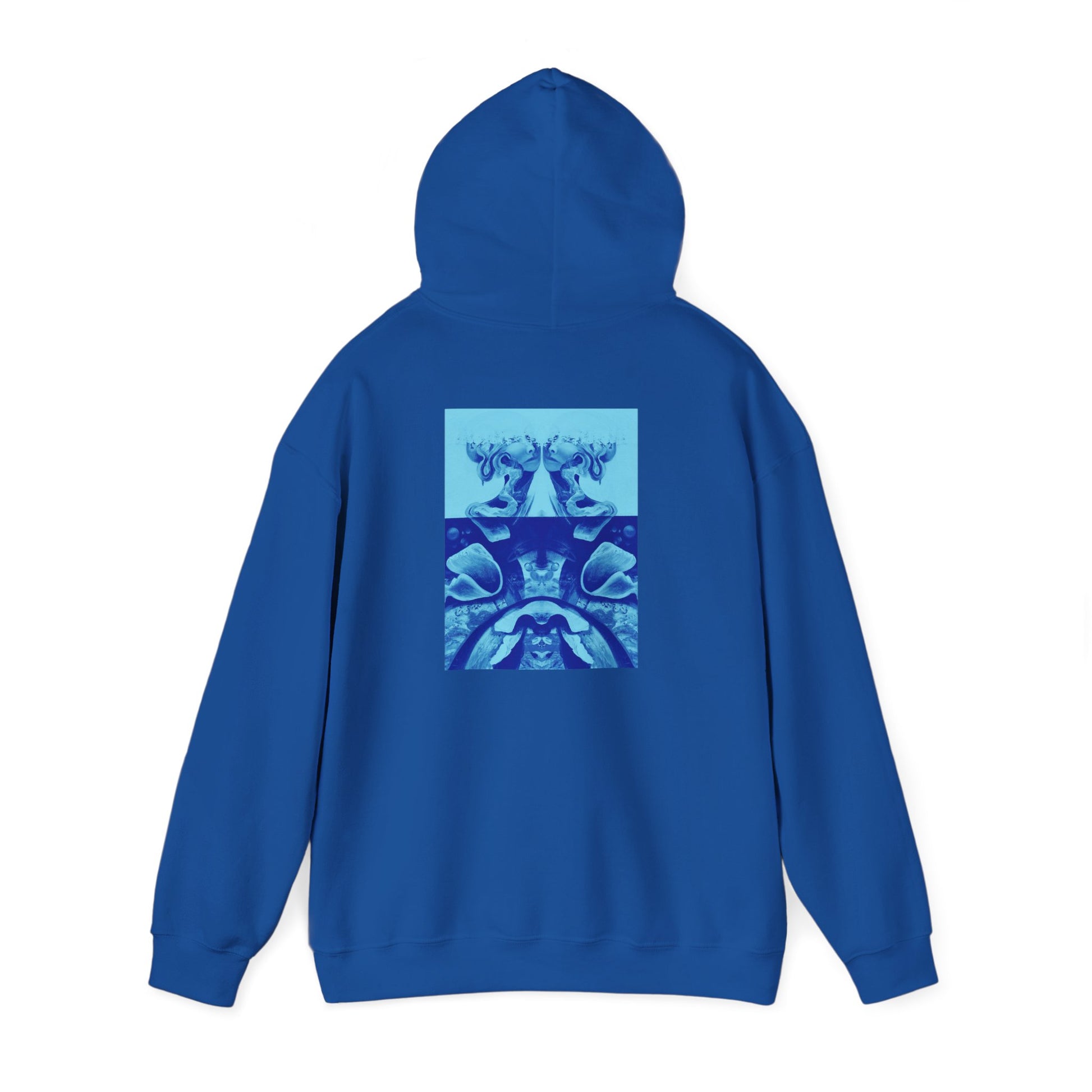 AMRU Minimal Logo Hoodie with Blue Abstract Back Print