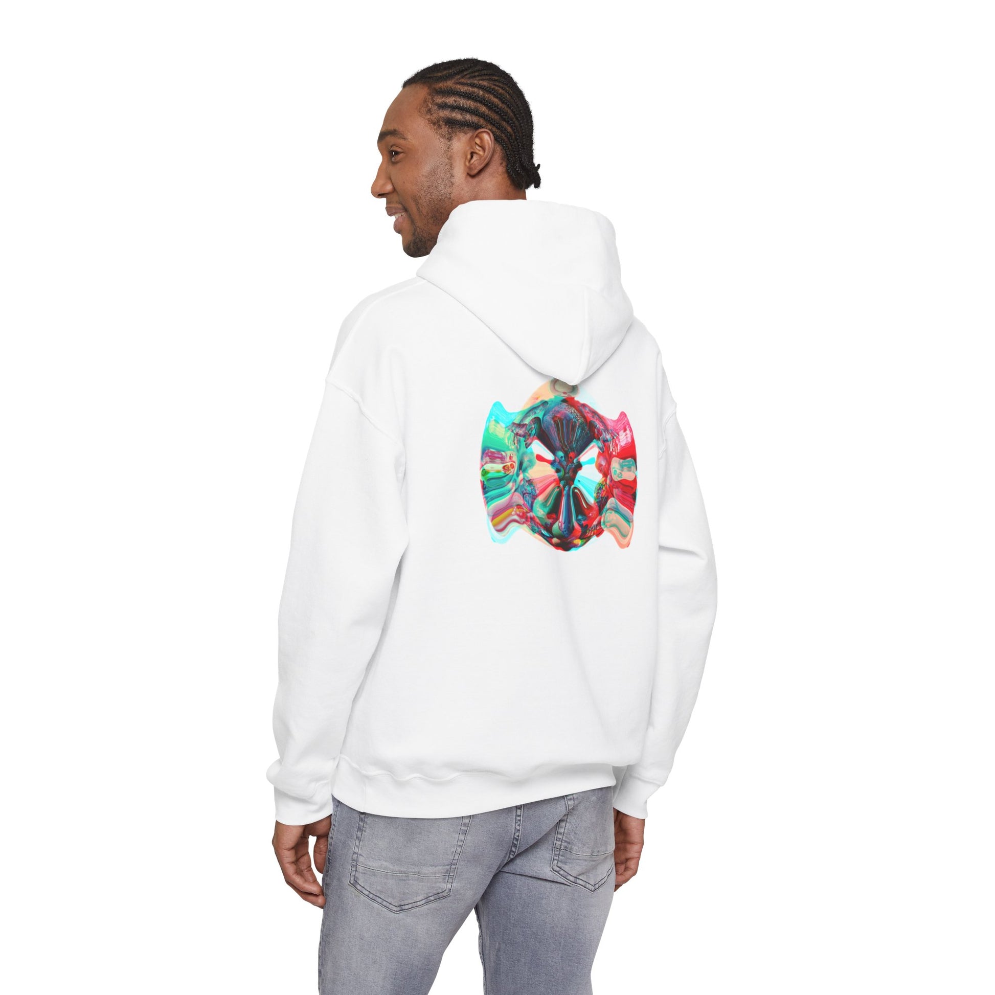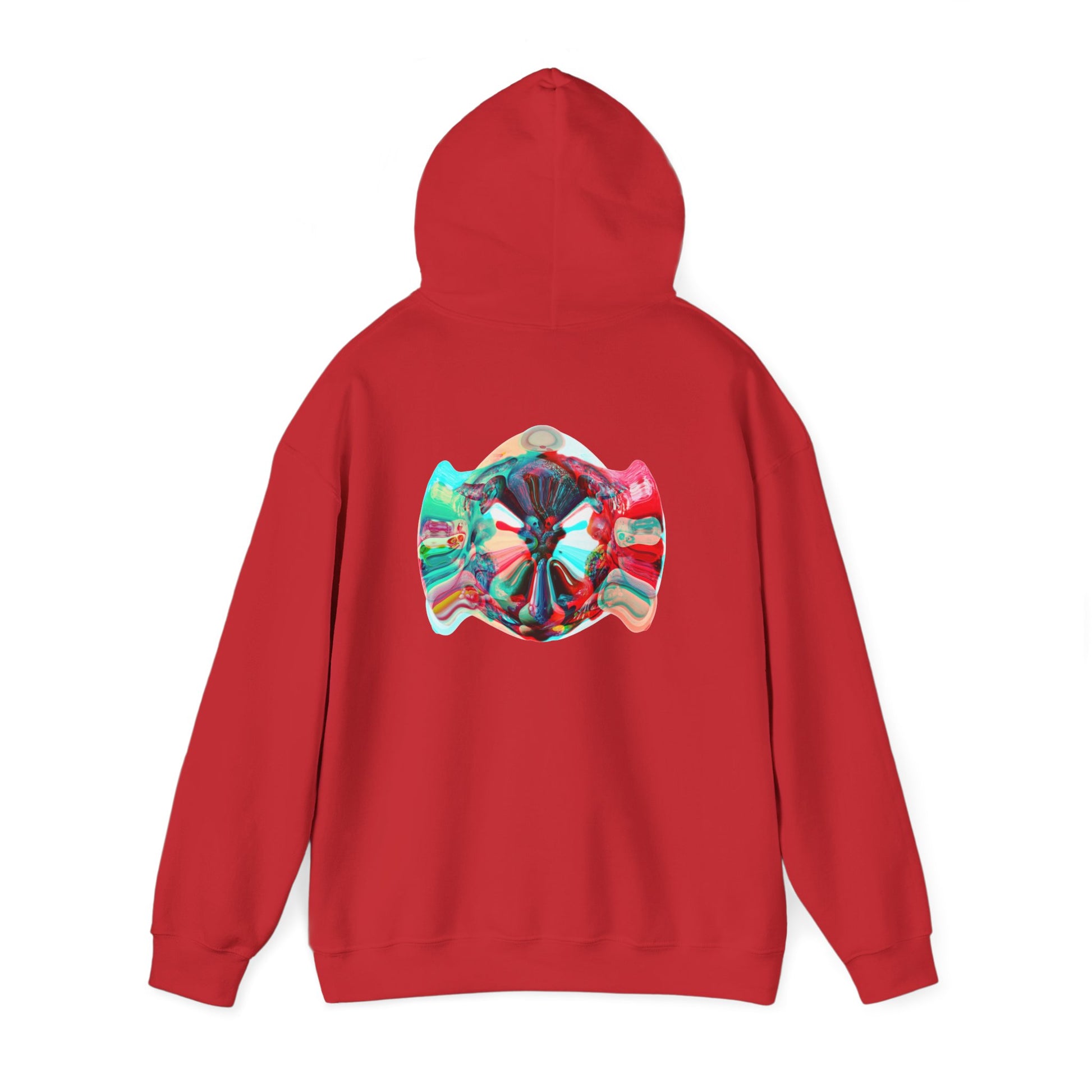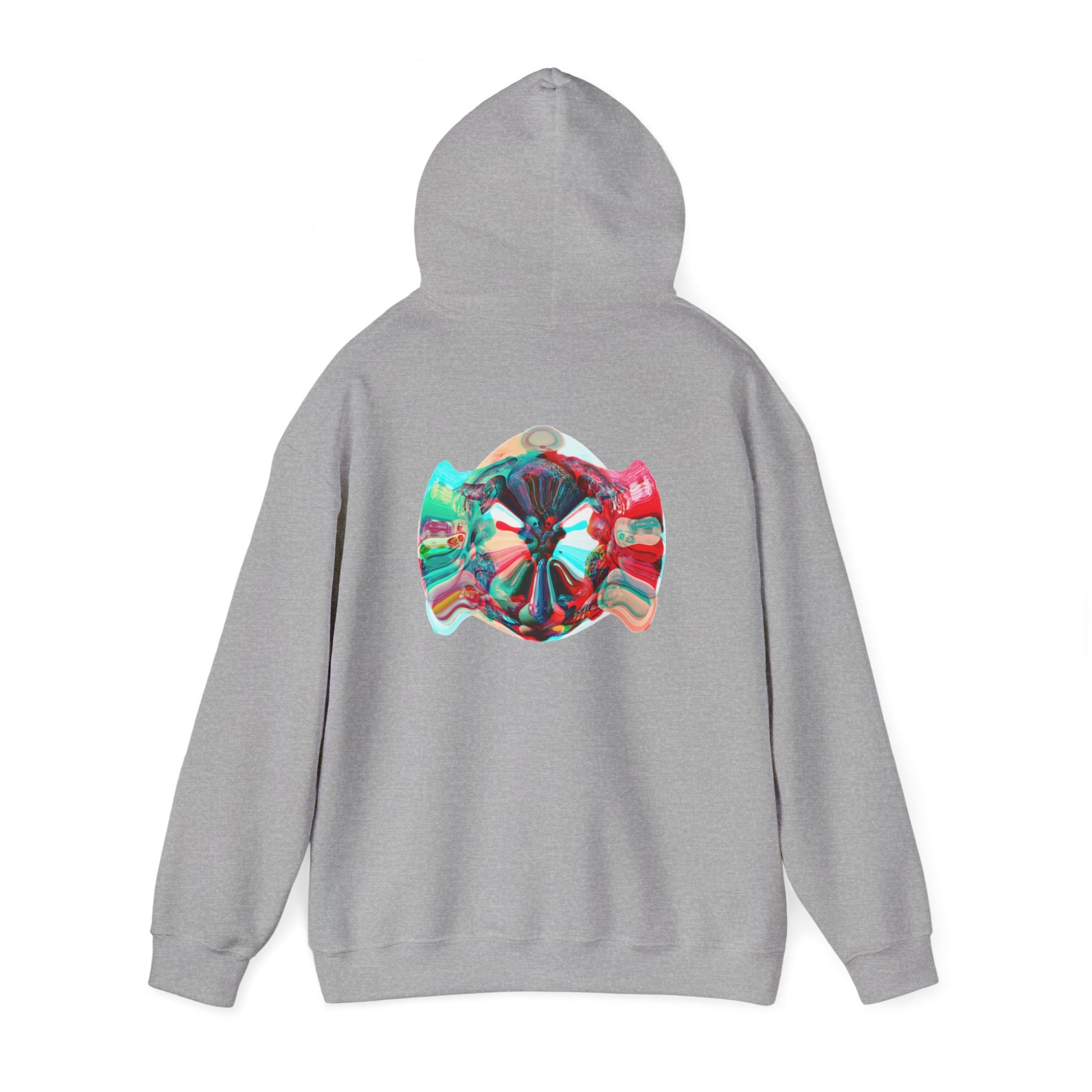 Hoodie — AMRU Minimal Front Logo & Colorful Abstract Back Art