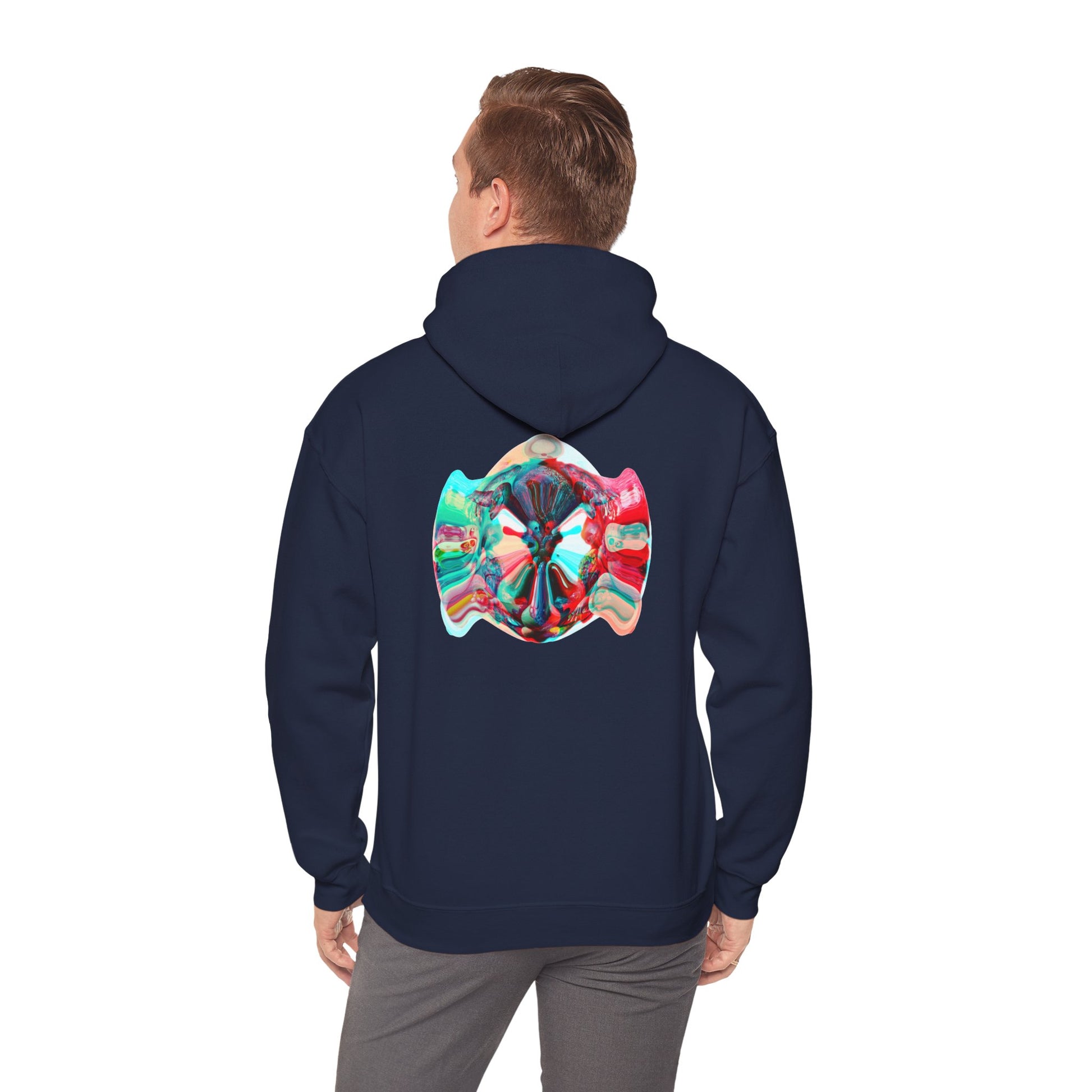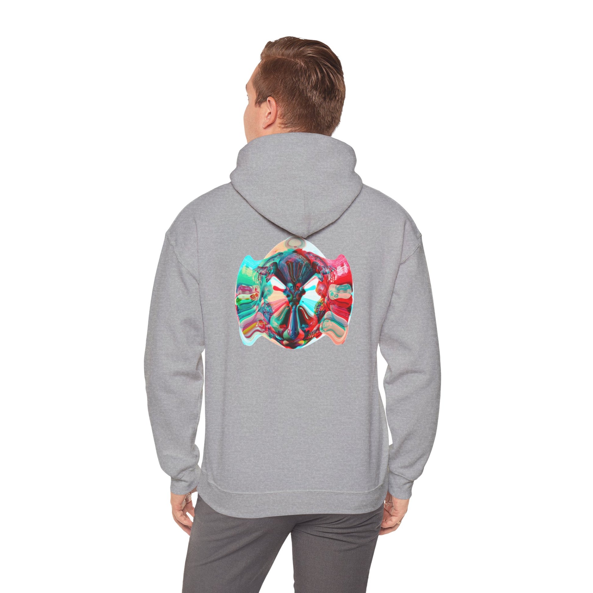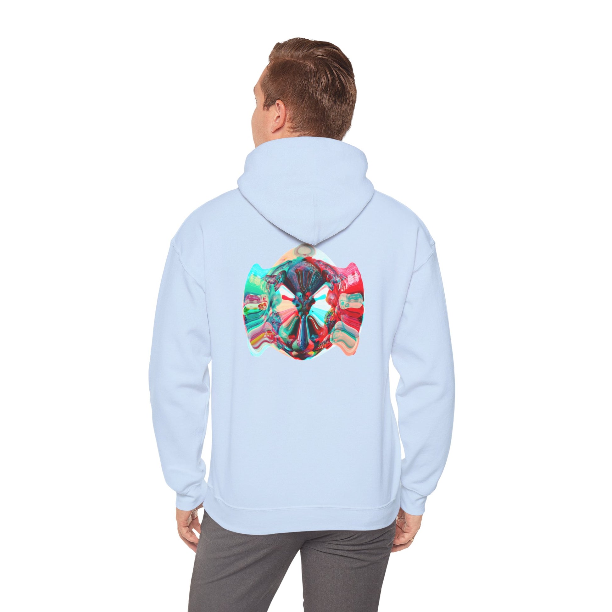 Hoodie — AMRU Minimal Front Logo & Colorful Abstract Back Art