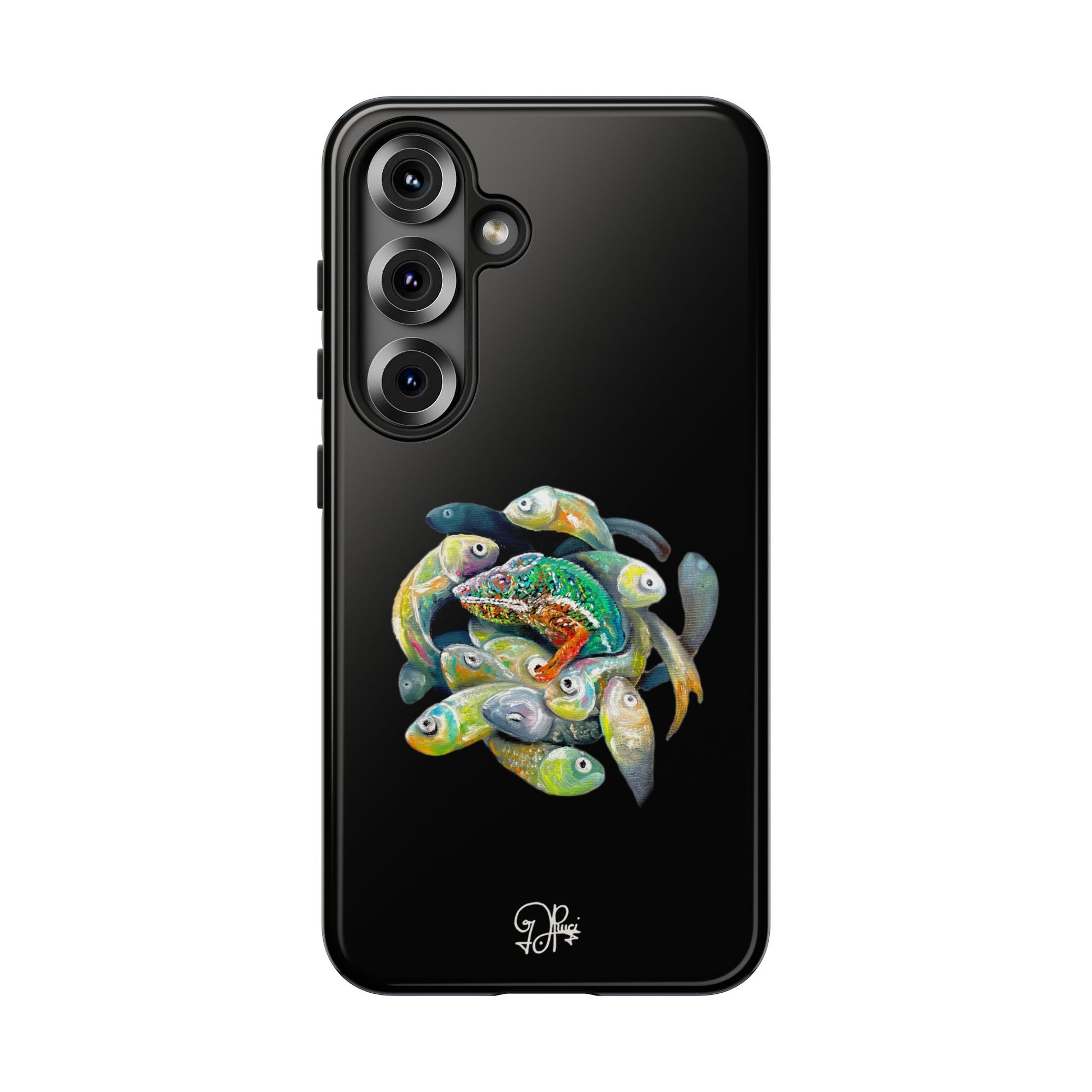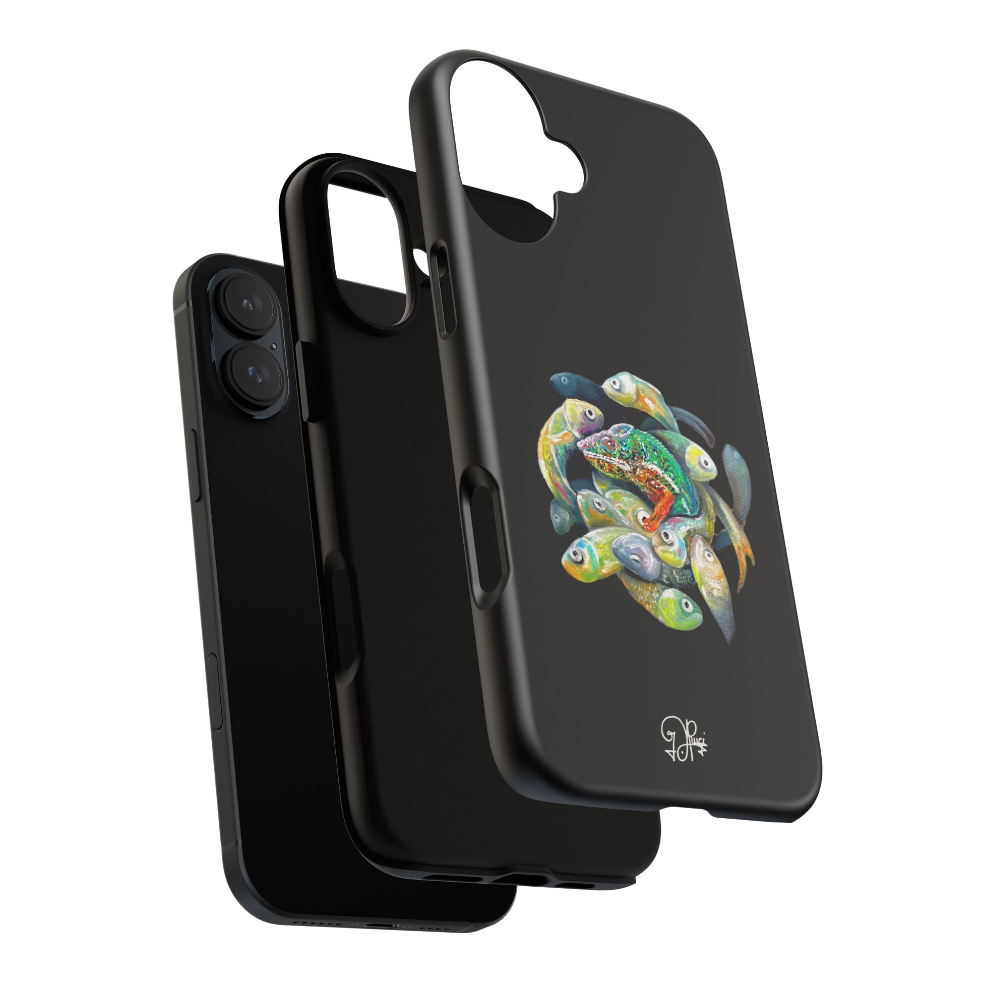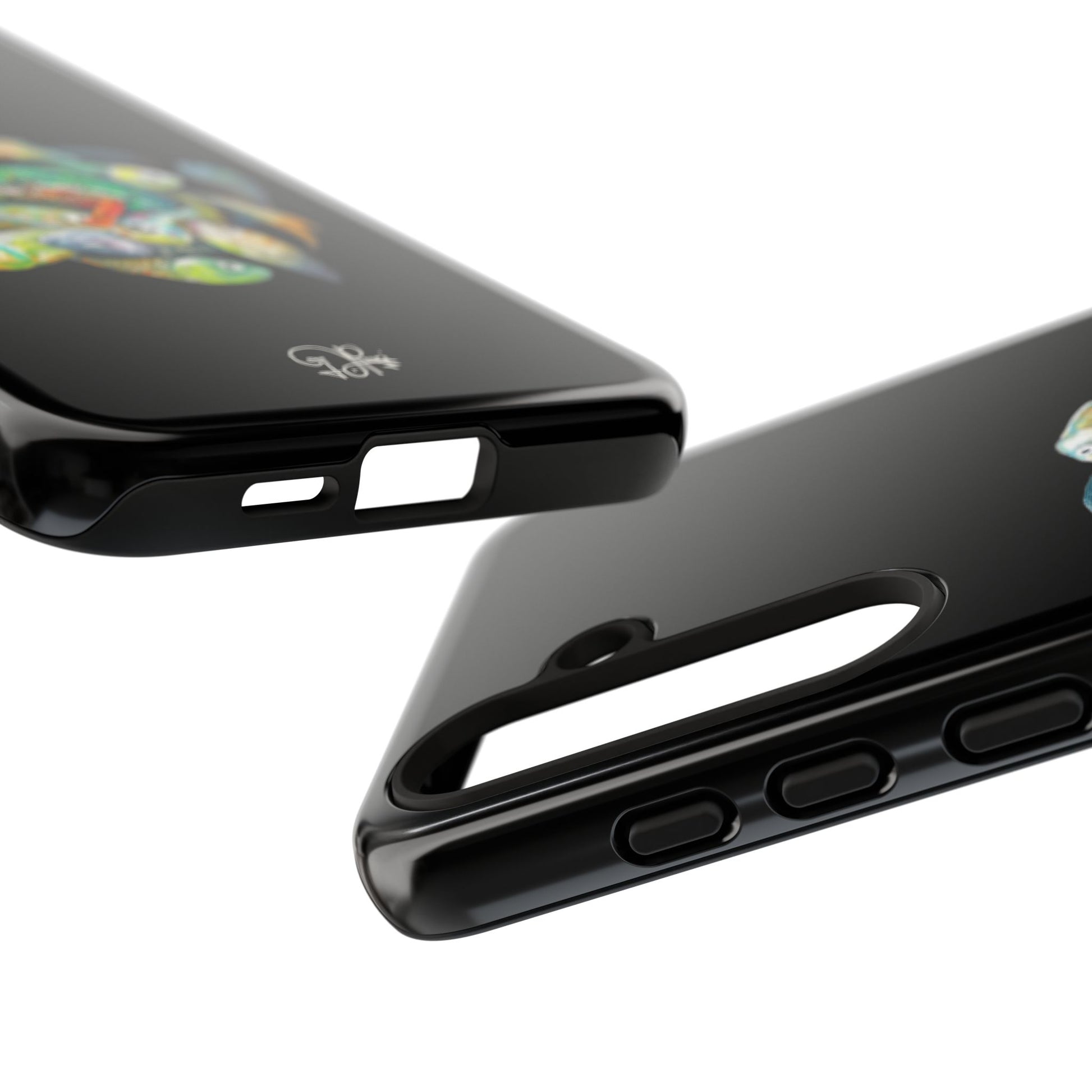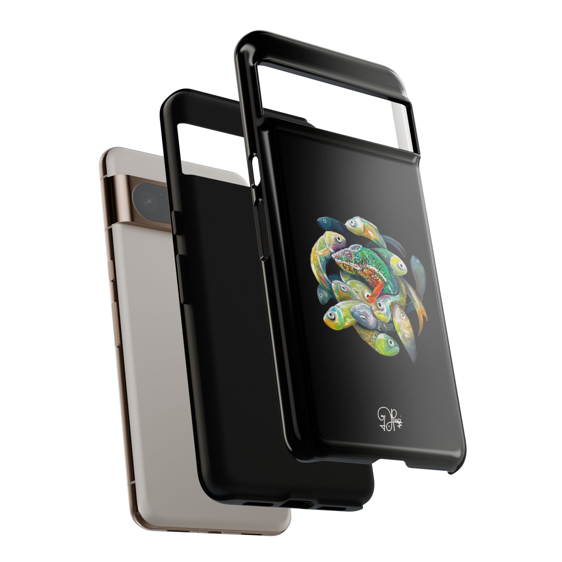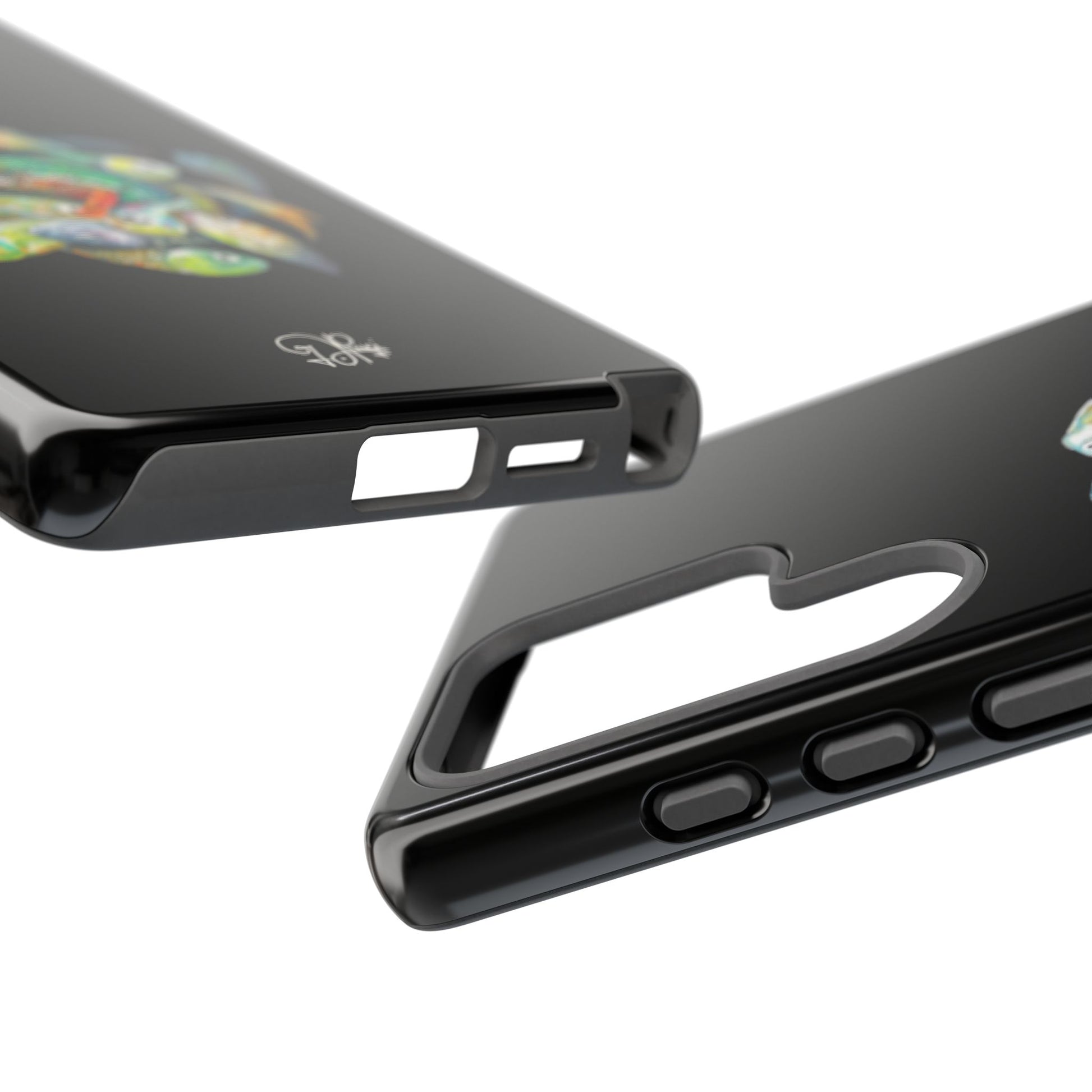 This tough phone case wraps your device in splashy, protective art. The low-profile dual-layer shell combines a rigid polycarbonate exterior with a TPU silicone liner for impact resistance and shock absorption. A vivid 3D wrap print places a colorful, swirling school of fish front-and-center against a deep black background — the colors remain vivid thanks to UV-resistant inks and sealed image transfer. Ports stay open and accessible, wireless charging works without removing the case, and you can choose glossy or matte finishes to match your style. Built to handle daily drops and knocks while keeping the artwork crisp, it’s a practical, wearable canvas for anyone who loves bold, aquatic-inspired designs.