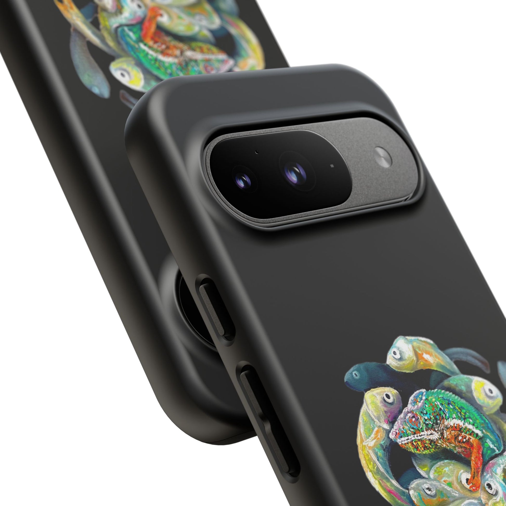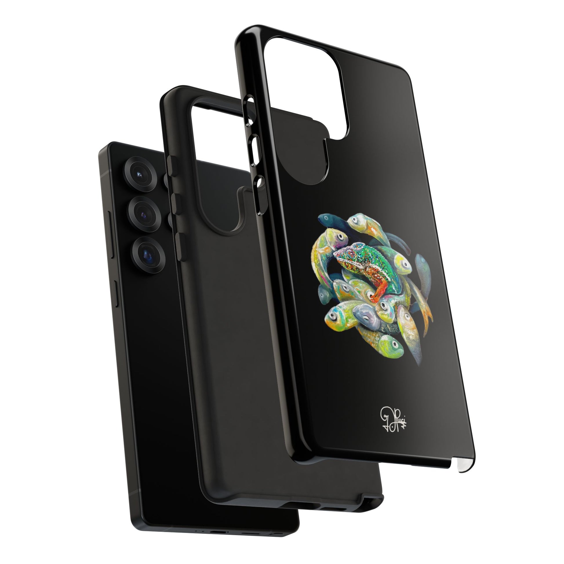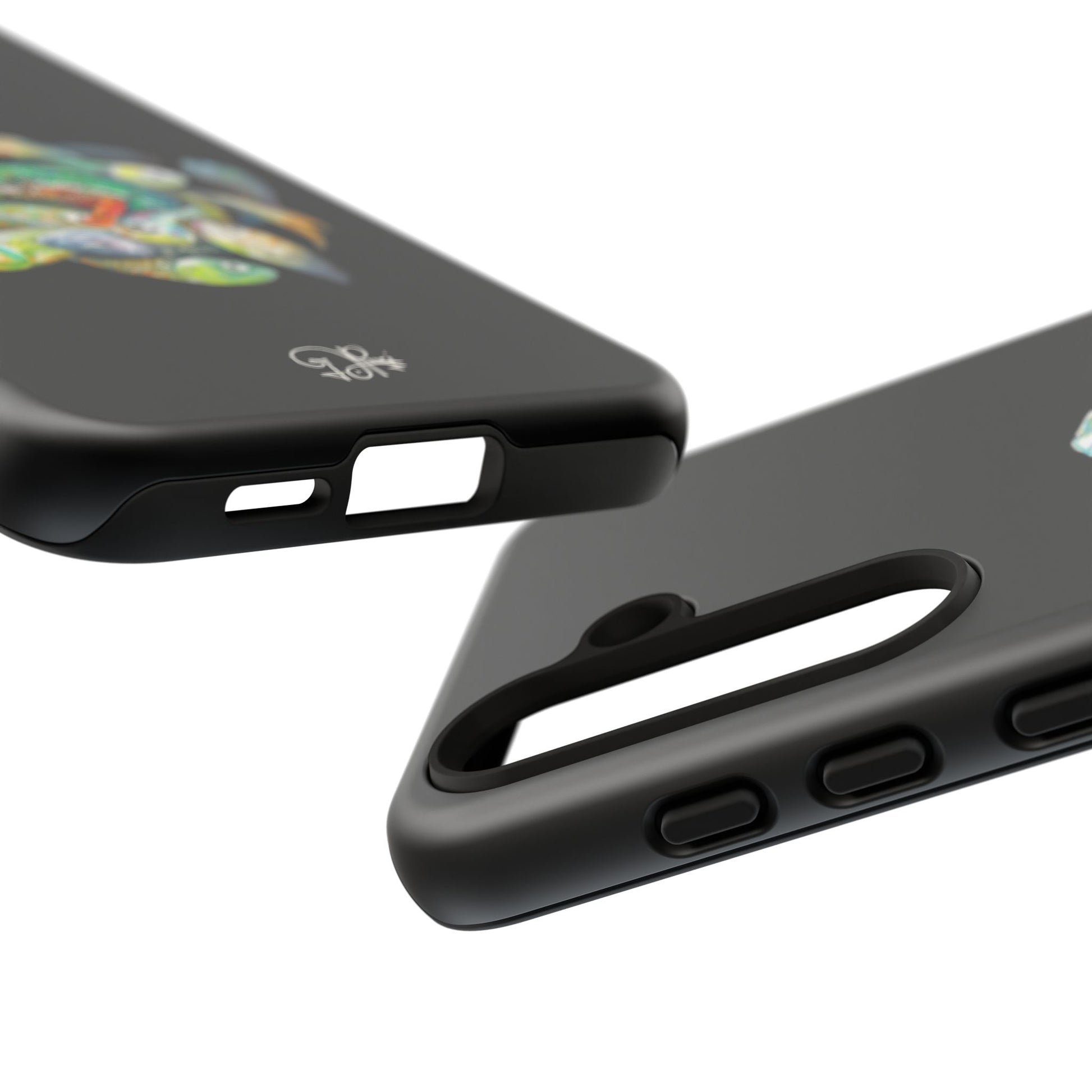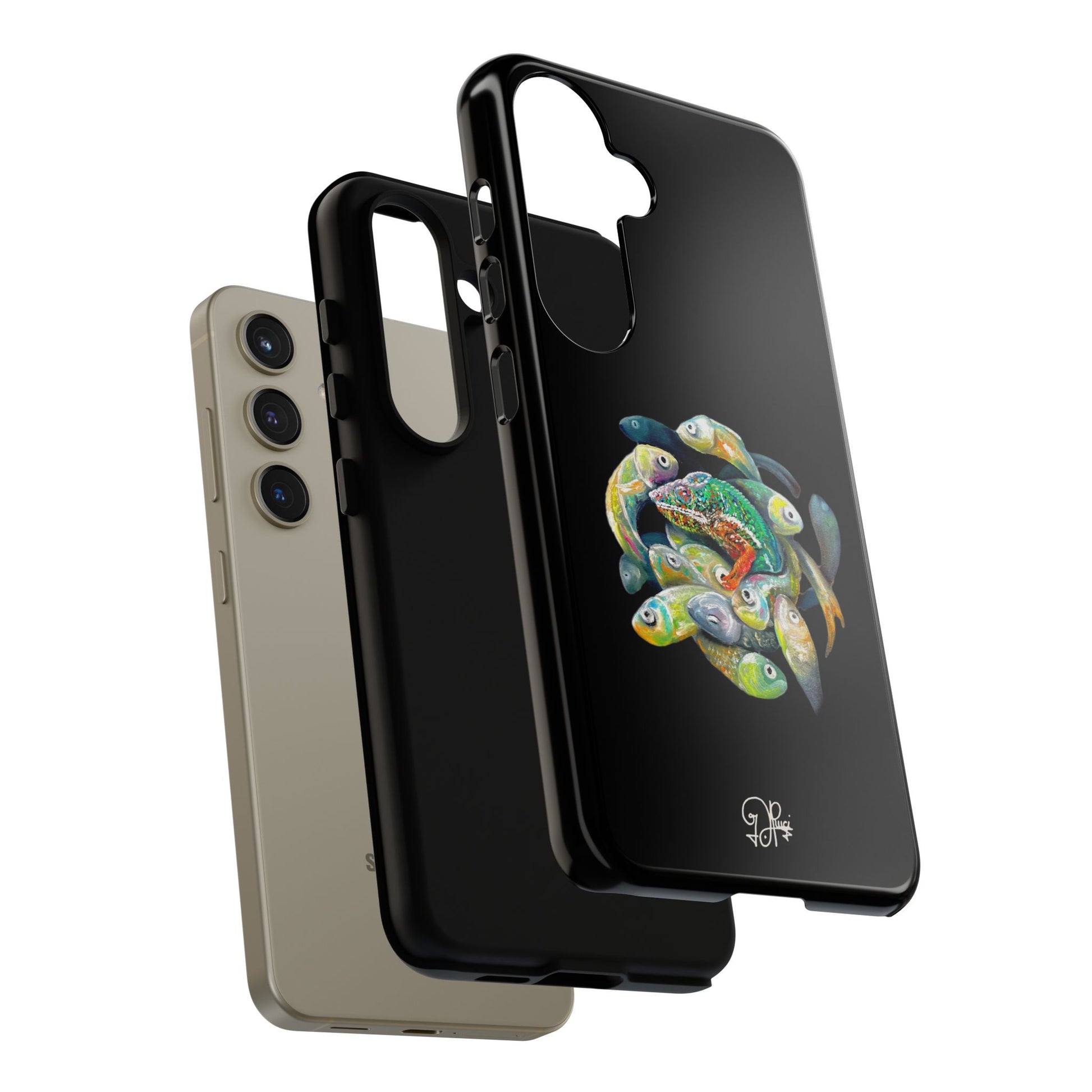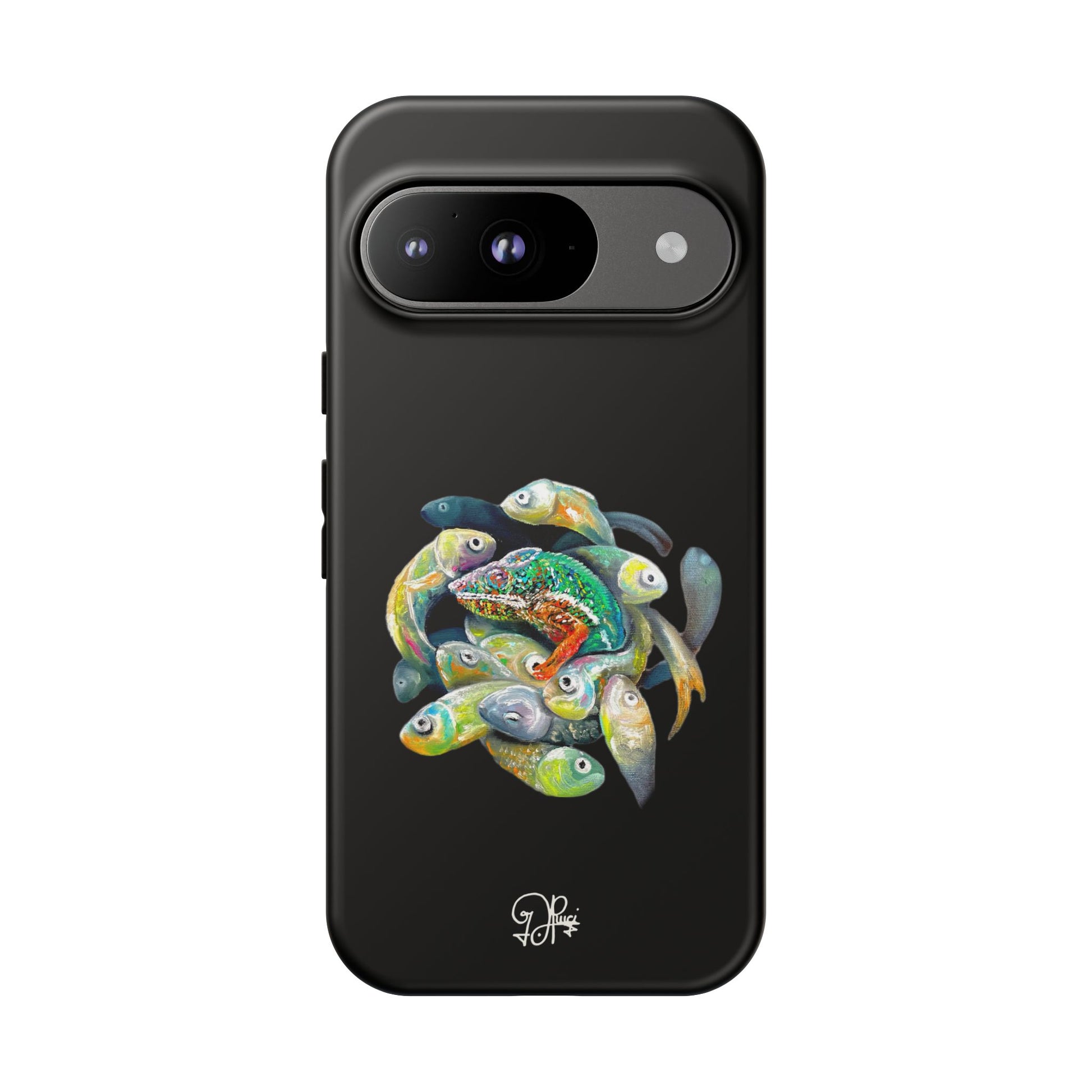 This tough phone case wraps your device in splashy, protective art. The low-profile dual-layer shell combines a rigid polycarbonate exterior with a TPU silicone liner for impact resistance and shock absorption. A vivid 3D wrap print places a colorful, swirling school of fish front-and-center against a deep black background — the colors remain vivid thanks to UV-resistant inks and sealed image transfer. Ports stay open and accessible, wireless charging works without removing the case, and you can choose glossy or matte finishes to match your style. Built to handle daily drops and knocks while keeping the artwork crisp, it’s a practical, wearable canvas for anyone who loves bold, aquatic-inspired designs.