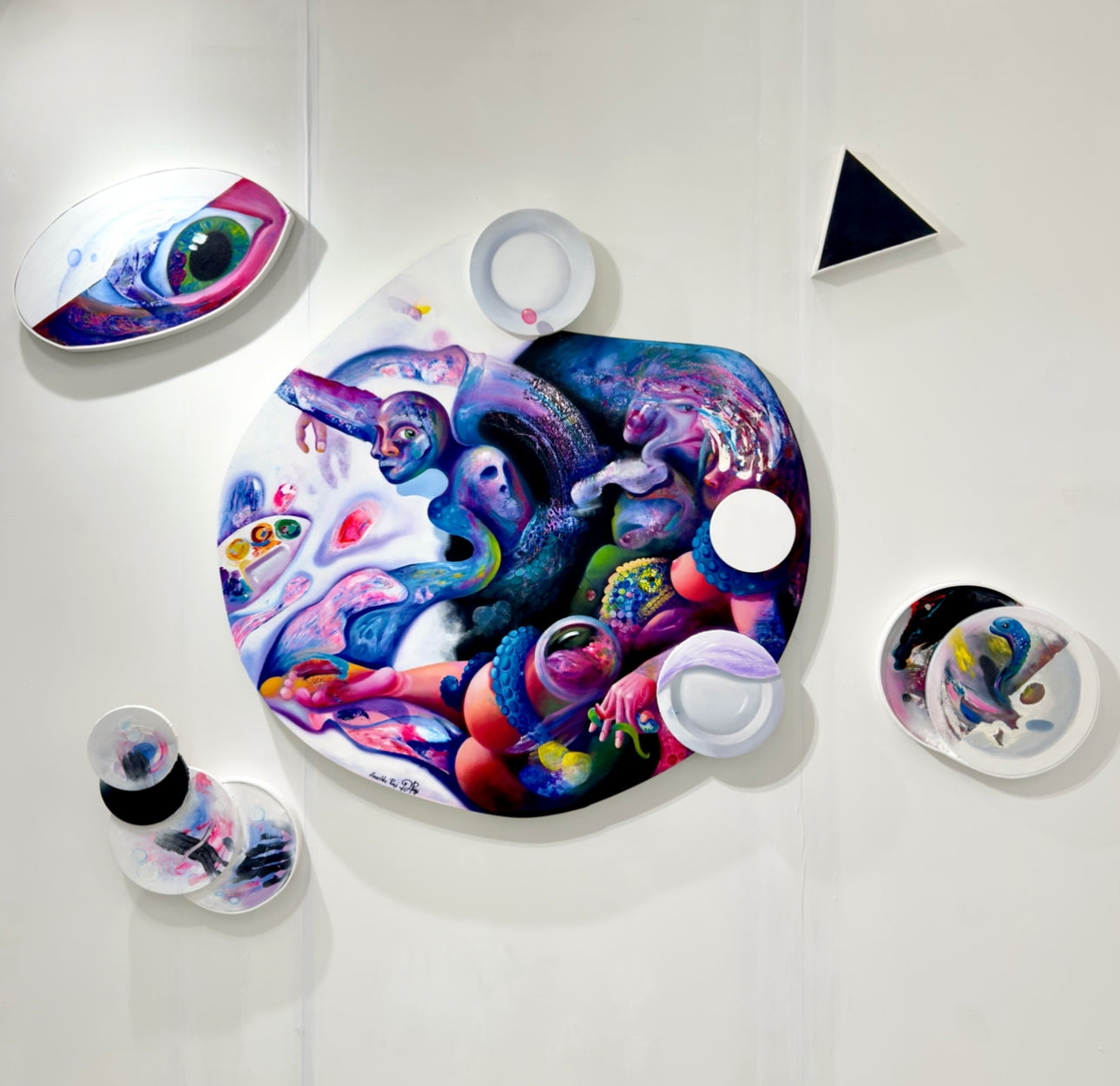 This composition will be different combining painting and installation like a single artwork . This way will give more movement and life to the artwork , bringing it more closer to the viewer and making it more powerful.